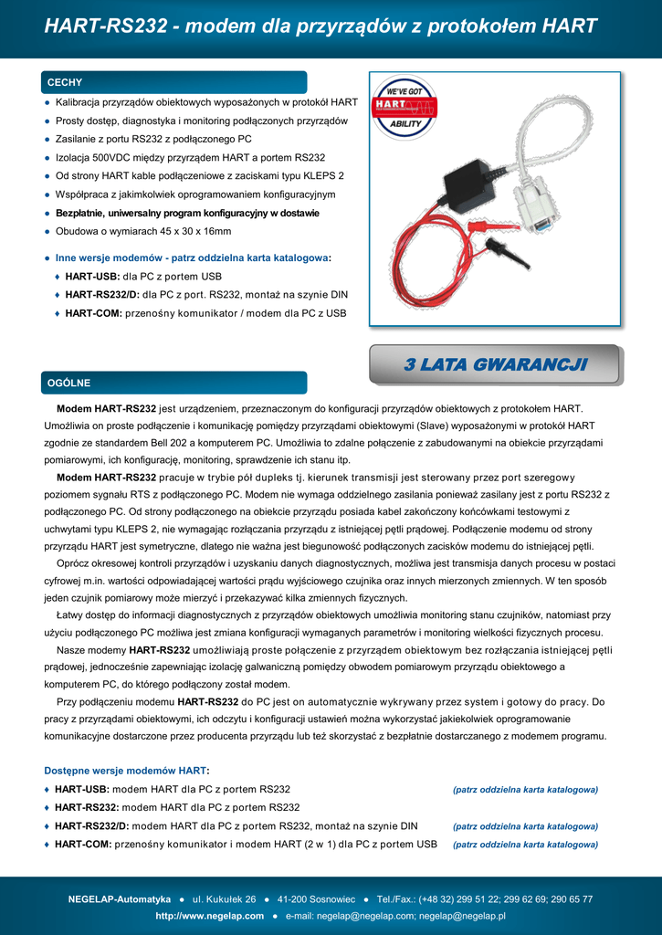 HART-RS232 - modem dla przyrządów z protokołem HART