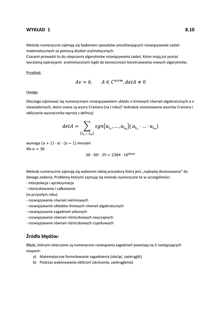 WYKŁAD 1 8.10 Źródła błędów