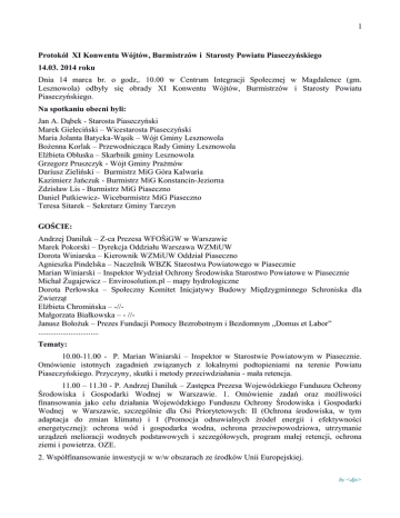 1 Protokół XI Konwentu Wójtów, Burmistrzów i Starosty Powiatu