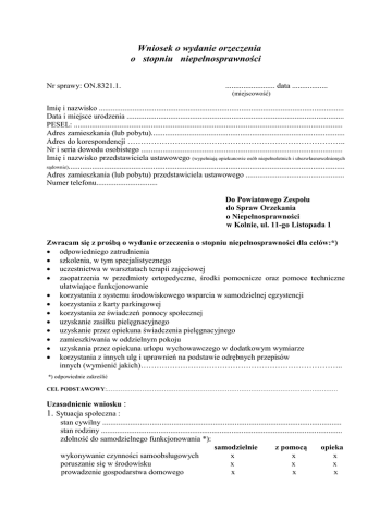 Wniosek o wydanie orzeczenia o stopniu niepełnosprawności