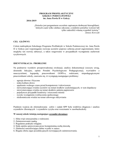 Program profilaktyczny - Szkoła Podstawowa im. Jana Pawła II w