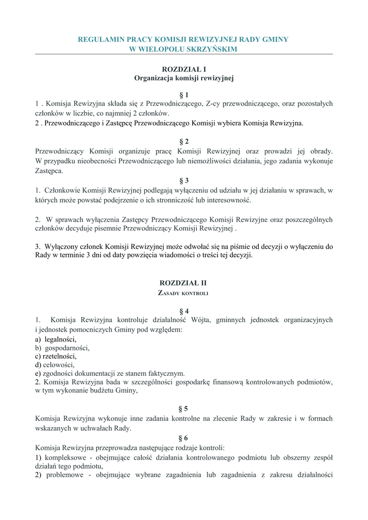 Regulamin pracy Komisji Rewizyjnej Rady Gminy w Wielopolu