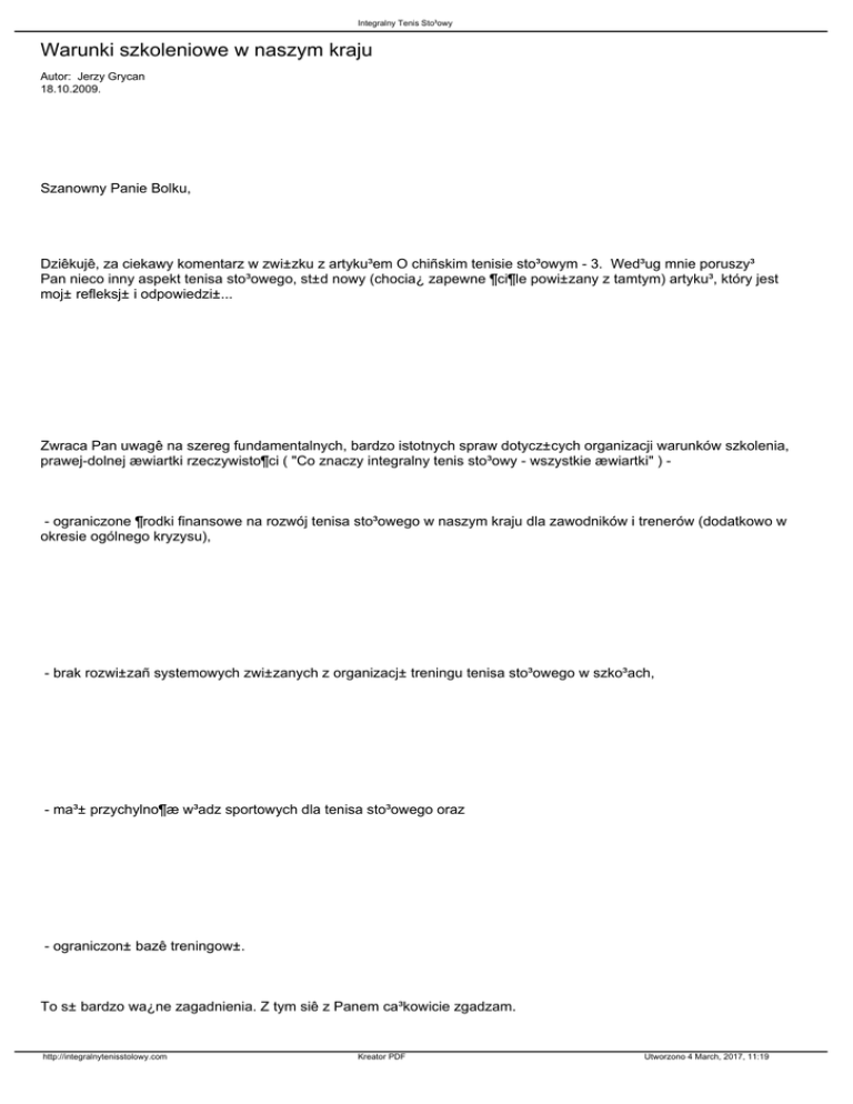 tu do przestudiowania "Co znaczy integralny tenis sto³owy - wszystkie poziomy" . "Najlepszych