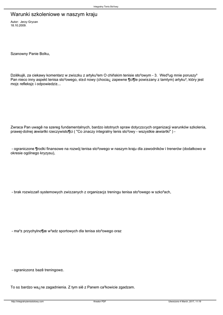 Dziêkujê, za ciekawy komentarz w zwi±zku z artyku³em O chiñskim tenisie sto³owym - 3. Wed³ug mnie poruszy³