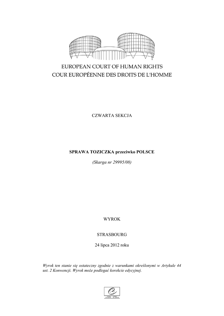 CZWARTA SEKCJA SPRAWA TOZICZKA przeciwko POLSCE