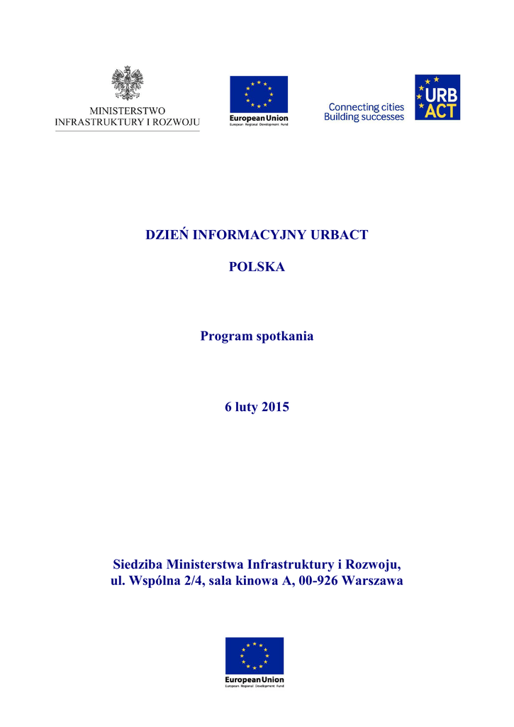 DZIEŃ INFORMACYJNY URBACT POLSKA Program spotkania 6