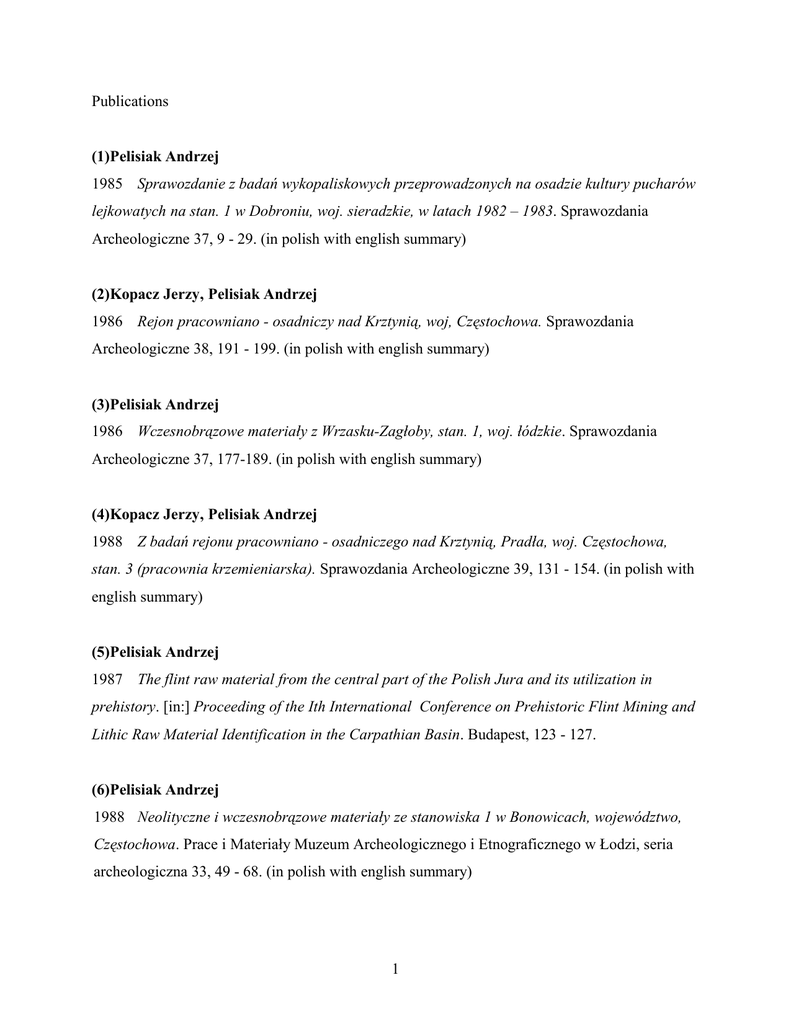 (1)Pelisiak Andrzej 1985 Sprawozdanie z badań wykopaliskowych