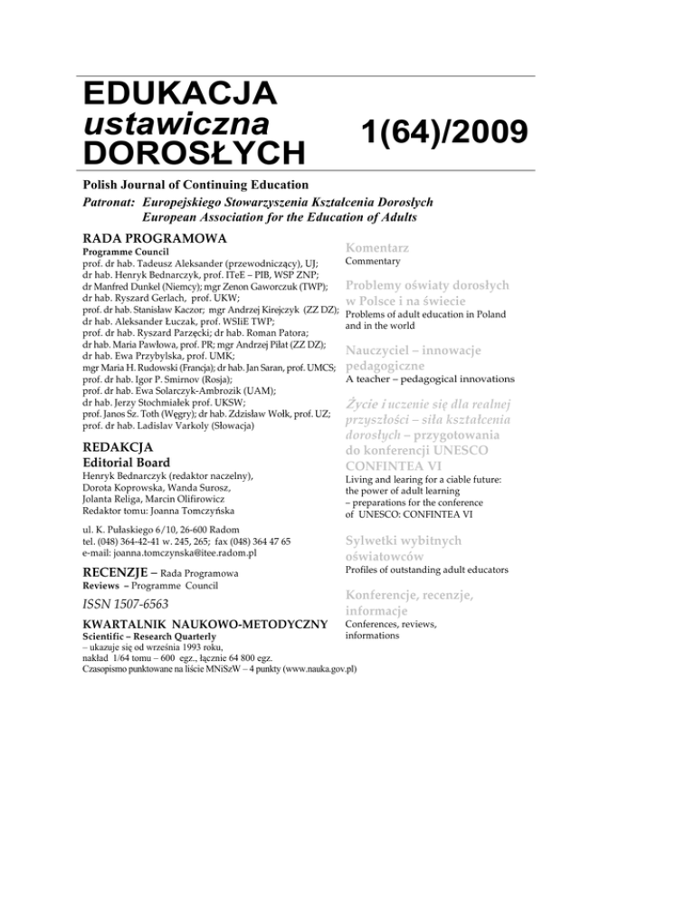 EDUKACJA ustawiczna DOROSŁYCH 1(64)/2009