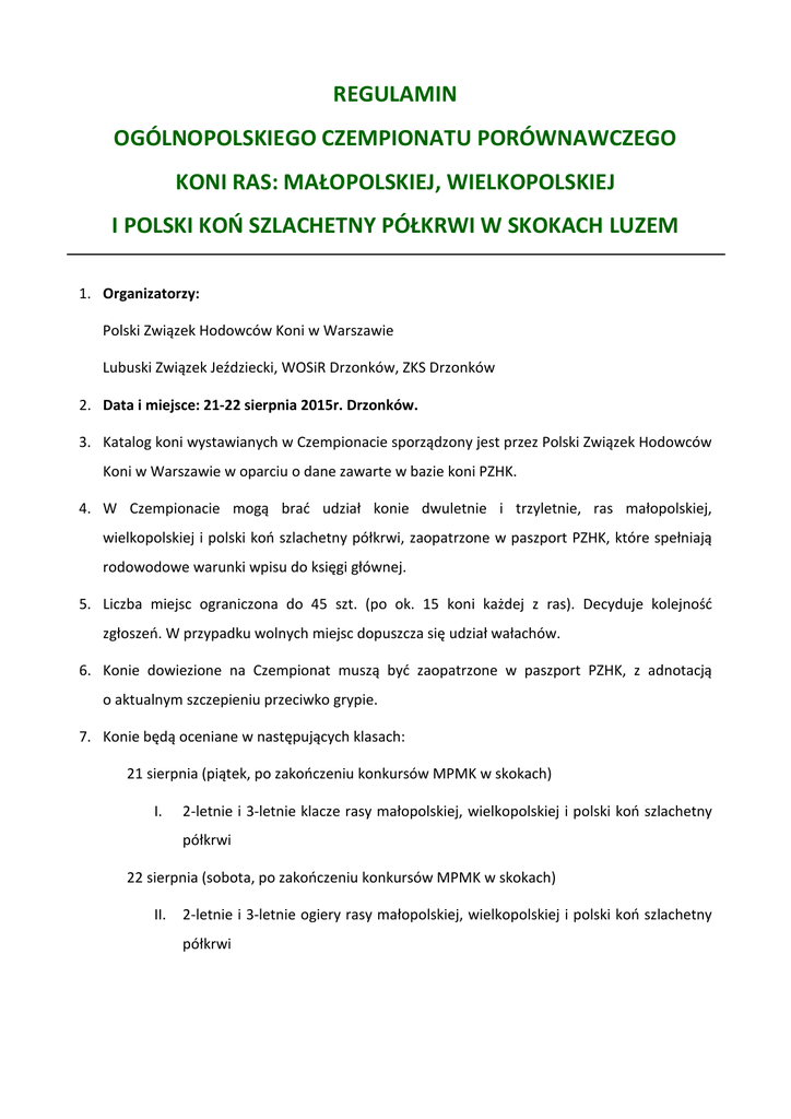 regulamin ogólnopolskiego czempionatu porównawczego koni ras
