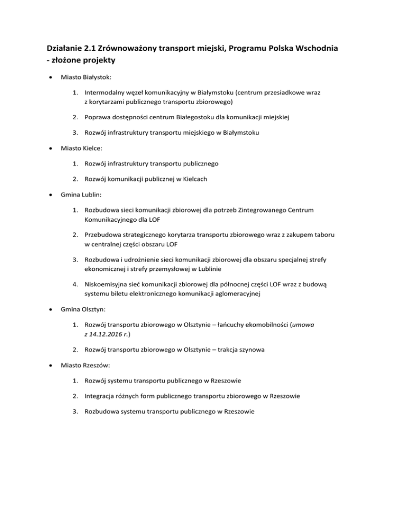 Lista złożonych projektów
