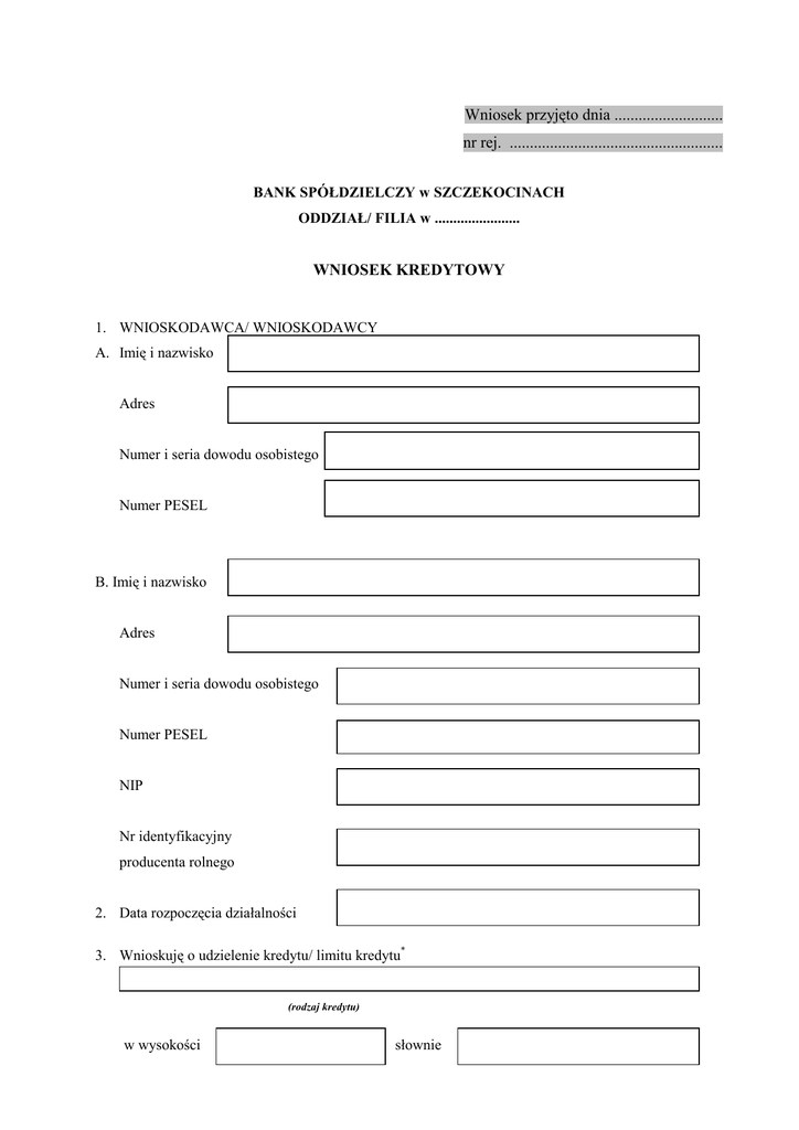 Wniosek - Bank Spółdzielczy w Szczekocinach