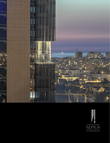 Nazwa projektu: Centrum Biurowe Neptun Adres: Aleja Grunwaldzka 103A, Gdańsk, Polska Deweloper: Hines Architekt: AHR Architects Powierzchnia biurowa: 15 300 m² (19 kondygnacji) Powierzchnia usługowa: 700 m² (parter + I piętro) Ilość miejsc parkingowych: 160 miejsc parkingowych na 3 kondygnacjach podziemnych LOKALIZACJA SO PO IUS ZK I GI ŚC LE ÓW T K MI N 205 M 2 ON IA K MI N U 1 02 M 1 YN T GD KO UT KIE DZ KA AŃS AL SPI W MANHATTAN WY UN KI GR IEN A GO STACJA KOLEJOWA SKM EJ DZ S AL STU KO NIS L O T Ł O WA C K I E G O GALERIA METROPOLIA GALERIA BAŁTYCKA DO KM 1 2 , 5M I N U T 15 Centrum Biurowe Neptun powstało w jednej z najbardziej atrakcyjnych lokalizacji - w centrum komercyjnym Gdańska. Inwestycja położona jest w dzielnicy Wrzeszcz przy alei Grunwaldzkiej 103A, stanowiącej główną arterię łączącą centrum Gdańska z Sopotem i Gdynią. Jednym z atutów lokalizacji budynku jest dogodny dojazd ze wszystkich części miasta zarówno samochodem oraz środkami komunikacji miejskiej (przystanki autobusowe i tramwajowe bezpośrednio przy alei Grunwaldzkiej). Szybka Kolej Miejska (SKM) ma swój przystanek zaledwie 300 metrów od budynku i zapewnia doskonałe połączenie z innymi dzielnicami Gdańska, w tym z historycznym centrum, a także z Gdynią i Sopotem. Ważnym przedsięwzięciem jest budowa Pomorskiej Kolei Metropolitalnej, która już w 2015 roku połączy Dworzec Gdańsk-Wrzeszcz z lotniskiem, skracając czas podróży na tym odcinku do 25 minut. GD AŃ SK 6 10 KM M IN U POLITECHNIKA GDAŃSKA T Sąsiadująca z aleją Grunwaldzką ulica Słowackiego umożliwia bezpośredni dojazd do Portu Lotniczego im. Lecha Wałęsy w Rębiechowie oraz do obwodnicy trójmiejskiej. Kolejnym atutem położenia inwestycji jest bliskie sąsiedztwo licznych obiektów handlowych i usługowych, między innymi Galerii Bałtyckiej oraz Centrum Handlowego Manhattan, wyróżniających się bogatą i różnorodną ofertą. W 2016 roku do użytku zostanie oddana także Galeria Metropolia położona niespełna 300 metrów od budynku. Centrum Biurowe Neptun to 19 kondygnacji nadziemnych, oferujących łącznie 16 000 m² powierzchni biurowej i handlowousługowej oraz 3 kondygnacje podziemnego parkingu dla 160 samochodów. ARCHITEKTURA Centrum Biurowe Neptun oferuje 16 000 metrów kwadratowych powierzchni biurowej oraz handlowo-usługowej w nowoczesnym, 19-piętrowym wieżowcu. Trzy kondygnacje podziemnego parkingu zapewniają miejsce dla 160 samochodów. Autorem koncepcji jest renomowana pracownia architektoniczna AHR Architects. W budynku zastosowano najnowocześniejsze rozwiązania techniczne oraz wysokiej jakości materiały wykończeniowe, stanowiące dopełnienie innowacyjnego projektu architektonicznego. Na parterze zaprojektowano lokale handlowo-usługowe, a na pierwszym piętrze znajdują się sale konferencyjne dedykowane przyszłym użytkownikom budynku. Ogólnodostępne sale konferencyjne zwiększają efektywność powierzchni biurowych zajmowanych przez najemców i obniżają całkowity koszt najmu. Centrum Biurowe Neptun już stał się najbardziej wyróżniającym budynkiem biurowym w Trójmieście i jednocześnie wizytówką dzielnicy Wrzeszcz. EFEKTYWNE POWIERZCHNIE BIUROWE Swoboda w organizacji przestrzeni biurowej, możliwość elastycznego podziału pięter na mniejsze moduły z możliwością dostosowania do indywidualnych potrzeb każdego najemcy to cechy powierzchni w Centrum Biurowym Neptun. Podniesiona podłoga oraz podwieszany sufit zapewnią swobodną dystrybucję systemów budynkowych oraz okablowania strukturalnego, ułatwiając także możliwość przeprowadzenia zmian aranżacji pomieszczeń biurowych w trakcie trwania umowy najmu. Całkowite przeszklenie fasady budynku zapewnia doskonałe doświetlenie stanowisk pracy światłem dziennym oraz umożliwia najemcom podziwianie pięknej panoramy Gdańska. Efektywne powierzchnie biurowe, ponadprzeciętna wysokość pomieszczeń, doskonałe nasłonecznienie biur, ograniczone powierzchnie wspólne oraz odpowiednio dobrane systemy techniczne budynku tworzą komfortowe oraz przyjazne środowisko pracy dla najemców budynku. Przykładowa aranżacja powierzchni biurowej • Powierzchnia: 850 m² • Liczba stanowisk pracy – układ gabinetowy: 18 • Liczba stanowisk pracy – open space: 82 • Liczba miejsc konferencyjnych: 18 • Całkowita liczba miejsc pracy: 118 PRZYJAZNE ŚRODOWISKO PRACY • powierzchnia kondygnacji biurowych: od 850 m² do 1 050 m² • ponadstandardowa wysokość pomieszczeń biurowych: 2,80 m (netto) • podniesiona podłoga oraz podwieszany sufit zapewniające swobodną dystrybucję systemów budynkowych • doskonałe doświetlenie światłem naturalnym dzięki w pełni przeszklonej fasadzie (ściana kurtynowa) • energooszczędne oświetlenie • szybkobieżne windy z krótkim czasem oczekiwania (poniżej 30 sekund) • wysokiej jakości materiały wykończeniowe • 24-godzinny dostęp do budynku oraz czynny i bierny system bezpieczeństwa • generator prądotwórczy • udogodnienia: restauracja, sale konferencyjne, usługi oraz handel w części parterowej • standard budynku spełniający europejskie wymagania dla obiektów biurowych klasy „A” • Certyfikat BREEAM (VERY GOOD) Hines jest prywatną firmą specjalizującą się w prowadzeniu inwestycji na rynku nieruchomości, organizacji procesu deweloperskiego i zarządzaniu nieruchomościami na całym świecie. Zakres dotychczasowych realizacji firmy, zarówno ukończonych, aktualnie prowadzonych, nabytych jak i zarządzanych to 1 318 nieruchomości o łącznej powierzchni ponad 50 milionów metrów kwadratowych, w tym powierzchnie w sektorze mieszkaniowym, handlowym, magazynowym, hotelarskim, sportowym, użyteczności publicznej oraz dużej skali kompleksy wielofunkcyjne i projekty infrastrukturalne. H ines posiada swoje biura w 115 miastach w 18 krajach, kontrolując aktywa o wartości około 28,2 miliarda USD. Pasmo sukcesów