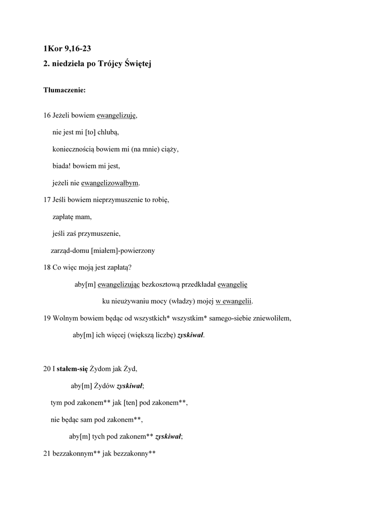 1Kor 9,16-23 2. niedziela po Trójcy Świętej