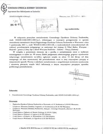 W załączeniu przesyłam zawiadomienie Generalnego Dyrektora O chrony Środowiska,