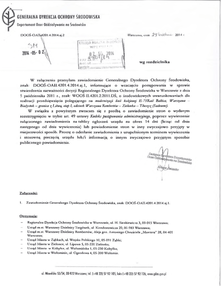 Z aw iadom ienie G en eraln eg o D y re k to ra O c h ro n y Ś rodow iska, znak: D C )O Ś -O A II.4 2 0 1 .4 .2 0 1 4 .aj.l.
