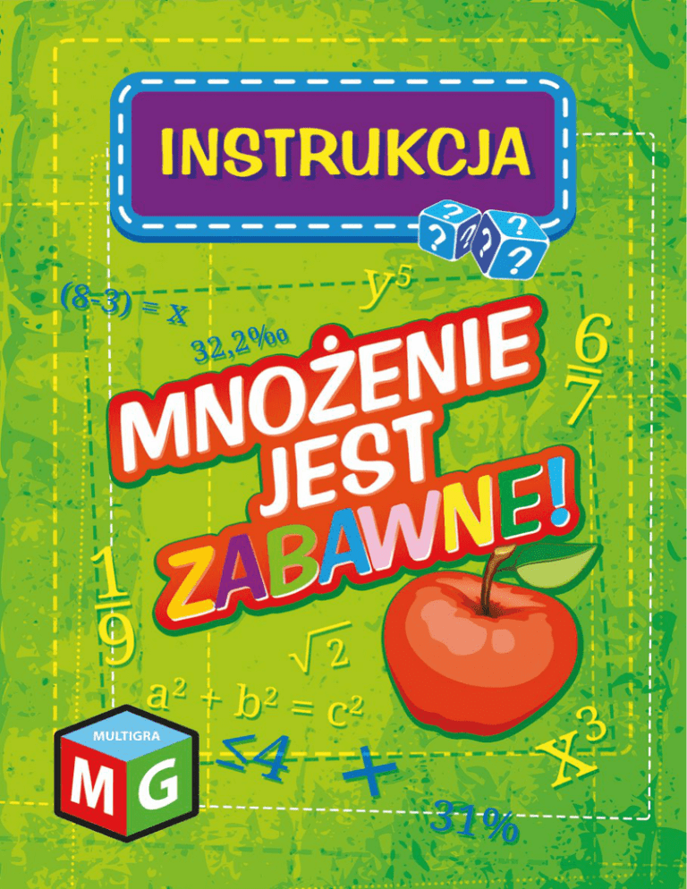 Zawartość pudełka: 1. Tabliczki z liczbami - 10 szt. 2. Plansza - 1 szt. 3. Specjalne kostki do gry - 2 szt. 4. Pionki - 10 szt. 5. Żetony - 50 szt. (po 5 szt. w kolorach pionków) 6. Tabliczka mnożenia - 1 szt. 7. Instrukcja Ilość graczy: 2-10 Wiek: 7+ Po rozpakowaniu należy sprawdzić zgodność elementów z listą zawartości pudełka umieszczoną powyżej. W razie niezgodności prosimy o kontakt na adres e-mail: [email protected] Matematyka jest niekwestionowaną królową nauk, która pobudza i rozwija umysł. Mało kto wiąże ją jednak z dobrą rozrywką. Ale co się stanie, jeżeli okaże się, że działania matematyczne nie są nudne, lecz... pasjonujące? Oto wciągająca gra dla dużych i małych, w której frajda z rozgrywki łączy się z nauką! Podczas każdego z czterech wariantów rywalizacji ćwiczysz refleks oraz zdolność szybkiego liczenia i mnożenia. Poznaj nowe oblicze edukacji: bądź szybki, licz pewnie i baw się na całego! A przy okazji opanuj perfekcyjnie tabliczkę mnożenia. PRZYGOTOWANIE DO GRY: 1. Rozłóż planszę na płaskiej powierzchni, np. stole. 2. Rozdziel pomiędzy graczy po jednym pionku - ustawcie je na polu START. 3. Rozdziel pomiędzy graczy żetony i potasowane tabliczki z numerami zgodnie z wybranym wariantem gry. CEL GRY: Celem gry jest dotarcie do mety na planszy w jak najkrótszym czasie. Gracze mogą przesuwać swoje pionki po prawidłowej odpowiedzi, która z kolei wymaga szybkiego i poprawnego mnożenia. JAK GRAĆ? W dalszej części instrukcji opisane są 4 warianty zabawy. W każdym z nich grę rozpoczyna najmłodszy z graczy, którego nazywamy w danej kolejce Rozgrywającym. Odsłania on jedną lub kilka tabliczek (w dalszej części instrukcji jest opisane, w którym wariancie ile tabliczek można odsłaniać), a następnie rzuca obiema kostkami naraz. Każdy z graczy samemu, w pamięci, sumuje wynik na kostkach. Jeśli na kostce wypadnie puste pole, oznacza to zero. Jeśli na obu kostkach wypadną puste pola - należy powtórzyć rzut. Rozgrywający również bierze udział w grze. Teraz każdy gracz musi jak najszybciej pomnożyć w pamięci zsumowany wynik z obu kostek przez liczbę widoczną u góry odsłoniętej tabliczki. Następnie musi swoim żetonem obstawić jeden z podanych na tabliczce wyników. Tutaj liczy się refleks. Jedna tabliczka daje punkty tylko jednemu graczowi. 1 Jeśli gracz obstawił poprawnie - przesuwa pionek o jedno pole na planszy. Jeśli obstawił nieprawidłowo - cofa pionek o jedno pole na planszy. Jeśli nic nie obstawił - jego pionek pozostaje w miejscu. UWAGA! Raz położony żeton nie może zostać przesunięty ani zdjęty z tabliczki. Musicie więc być pewni swojej odpowiedzi, inaczej będziecie musieli cofnąć swój pionek. Teraz rozpoczyna się następna kolejka. Tym razem Rozgrywającym jest osoba siedząca po lewo od poprzedniego Rozgrywającego. W ten sposób kolejka krąży zgodnie z ruchem wskazówek zegara. WARIANTY GRY: 1 - "WSZYSCY NA JEDNEGO" Każdy z graczy otrzymuje jeden żeton w kolorze swojego pionka. Rozgrywający odsłania na środku stołu jedną tabliczkę i rzuca kostkami. Osoba, która jako pierwsza obstawi poprawny wynik przesuwa swój pionek o jedno pole do przodu. Użyta tabliczka wraca na spód stosu. 2 - "RAZ-DWA-TRZY" Każdy z graczy otrzymuje jeden żeton w kolorze swojego pionka. Rozgrywający rozdaje wszystkim uczestnikom po jednej tabliczce. Jeżeli zostały jakieś wolne tabliczki, to leżą dalej w stosie, który kładziemy pomiędzy dwoma dowolnymi, siedzącymi obok siebie graczami. Rozgrywający rzuca kostkami. Gracze wykonują działania matematyczne tylko na własnych tabliczkach. Osoba, która jako pierwsza położy swój żeton na tabliczce, liczy na głos do trzech (lub do Rys. 1: Kierunek przekazywania tabliczek pięciu, jeżeli w grze biorą udział młodsze Stos z wolnymi tabliczkami dzieci, które potrzebują czasu na zastanowieleży pomiędzy nie się). Rywale mogą obstawiać żetony na graczem A i B. swoich tabliczkach tylko dopóki trwa liczenie. Wszyscy, którzy obstawili u siebie prawidłowe wyniki przesuwają swoje pionki do przodu. Pozostali stoją w miejscu (brak obstawienia) lub się cofają (źle umieszczony żeton). Gracze przekazują tabliczki osobie siedzącej po lewo i odbierają tabliczki od osoby siedzącej po prawo. W tym momencie stos z wolnymi tabliczkami traktujemy jak "gracza": osoba, która ma go po swojej lewej stronie, odkłada na jego spód użytą właśnie tabliczkę, a osoba, która ma go po swojej prawej, bierze z jego wierzchu nową tabliczkę (patrz rys. 1). A D B C 3 - "RĘCE DO GÓRY!" Każdy z graczy otrzymuje jeden żeton w kolorze swojego pionka. Rozgrywający rozdaje 2 wszystkim uczestnikom po jednej tabliczce. Jeżeli zostały jakieś wolne tabliczki, to leżą dalej w stosie, który kładziemy pomiędzy dwoma dowolnymi, siedzącymi obok siebie graczami. Rozgrywający rzuca kostkami. Gracze wykonują działania matematyczne tylko na własnych tabliczkach. Osoba, która jako pierwsza położy swój żeton na tabliczce wyrzuca w górę obie ręce i kończy tym kolejkę. Tylko ten, kto jako pierwszy podniesie ręce, może zyskać ruch pionkiem na kolejne pole. Wszyscy pozostali gracze stoją w miejscu - jeżeli niczego nie obstawili (lub obstawili poprawnie, ale za późno) albo cofają pionek o jedno pole, jeżeli obstawili źle. Gracze przekazują tabliczki jak w wariancie 2 (patrz rys. 1). 4 - "MULTIGRA" W tym wariancie potrzebujemy przynajmniej 3 graczy. W każdej kolejce na stół wyciągana jest konkretna liczba tabliczek: • przy 3-4 graczach: 2 tabliczki • przy 5-6 graczach: 3 tabliczki • przy 7-8 graczach: 4 tabliczki • przy 9-10 graczach: 5 tabliczek Każdy z graczy otrzymuje tyle żetonów w kolorze swojego pionka, ile tabliczek jest na stole. Rozgrywający odsłania odpowiednią ilość tabliczek i rzuca kostkami. Gracze wykonują działania matematyczne na wszystkich widocznych ta