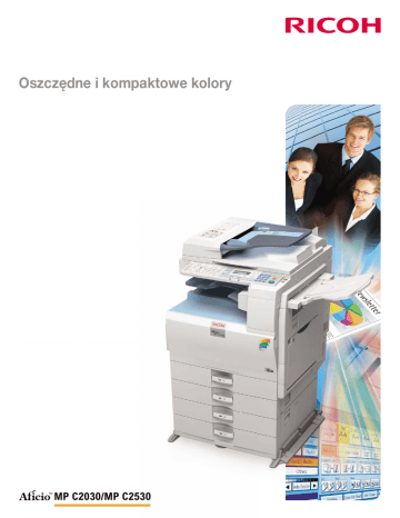 Oszczędne i kompaktowe kolory MP C2030/MP C2530 Kolor dla wszystkich profesjonalnych biur Wymagania związane z wydrukami kolorowymi w biurach rosną coraz bardziej. Obecnie kolor jest już standardem outsourcing dokumentów pochłania cały budżet. Ricoh Aficio™MP C2030/MP C2530 to idealna alternatywa. Produktywne, elastyczne oraz kompaktowe to zdecydowanie najważniejsze cechy tej serii urządzeń. Odkryj, jak wszystkie możliwości, których wymagasz mogą zmieścić się w tak małym urządzeniu. • Uzyskaj idealną ostrość i jakość wydruków kolorowych dzięki nowemu tonerowi w technologii PxP™. • Doskonała i niezmienna produktywność przy prędkościach 20/25 str/min. • Dupleks przy prędkości simpleksu. • Szeroka gama obsługiwanych mediów. • Wszystko czego potrzebujesz: kopiowanie, drukowanie, skanowanie oraz faksowanie (opcja). Zabezpiecz cały obieg dokumentów Znakomite kolory Twoje kolorowe wydruki będą świeże i dokładne dzięki nowemu tonerowi w technologii PxP™. Jakość pozostaje taka sama nawet przy dłuższych pracach. Rozdzielczość druku to idealne 600dpi. Standardowe możliwości drukowania Nowe MP C2030/MP C2530 posiada wszystkie podstawowe funkcjonalności drukarki już w standardzie ! Ciesz się funkcjonalnościami dzięki prostemu w obsłudze i opartemu na czytelnych ikonach sterowniku RPCS™ wraz z opcjonalnym sterownikiem PCL. Dodatkowo Twoje monochromatyczne oraz kolorowe wydruki z łatwością możesz posortować elektronicznie. Szeroki zakres obsługiwanych mediów Zwykłe wydruki, ulotki? MP C2030/MP C2530 posiada realny szeroki zakres obsługiwanych typów papieru. Obsługują rozmiary pomiędzy A3 i A6 od delikatnej gramatury (52 g/m² z tacy ręcznej) do dużej (256 g/m² z standardowych kaset lub tacy ręcznej). Błyszczący i powlekany papier lub karton mogą być wykorzystane z łatwością, nawet koperty i folie można wykorzystać poprzez standardową tacę ręczną. Niezawodne silniki Silniki MP C2030/MP C2530 są owocem wieloletniej pracy i doświadczenia jakie zdobyło Ricoh. Nowy system tandemowych bębnów daje Ci pewność jakiej potrzebujesz. Uproszczona droga papieru zmniejsza ryzyko zacięć papieru dzięki czemu Twoje urządzenie jest ciągle dostępne. Przy maksymalnej pojemności papieru (1,600 arkuszy) możesz zapomnieć o ciągłym dokładaniu papieru do podajników. Doskonała produktywność Drukowanie w dupleksie przy prędkości simpleksowej – nie wszystkie maszyny tak potrafią. MP C2030/MP C2530 drukuje i kopiuje przy prędkościach 20/25 str/min monochromatycznie jak i w kolorze. Pierwszy wydruk otrzymujemy po mniej niż 6,5 sekundy w przypadku wydruku monochromatycznego natomiast w pełnym kolorze poniżej 9,5 sekundy. Pamiętamy o środowisku, a Ty? ‘Środowisko’ to nie tylko kolory dla Ricoh – to również podejście. Nasz toner PxP™ (polyester x polimeryzacja) ma zdecydowanie mniejszą emisję dwutlenku węgla niż zwykłe konwencjonalne tonery. Zdecydowaną zaletą jest to, że MP C2030/MP C2530 posiada dupleks w standardzie. Oszczędność papieru doskonale wpływa na środowisko jak i na budżet Twojej firmy. MP C2030/MP C2530 KOPIARKA SPECYFIKACJA SKANER Proces kopiowania: Suchy elektroczniny system transferowy Prędkość skanowania: Prędkość kopiowania: MP C2030: MP C2530: Rozdzielczość: Maksymalnie 600 dpi Rozdzielczość: 600 dpi Rozmiary oryginałów: A5 - A3 Wielokrotna kopia: Do 999 Formaty wyjściowe: PDF/JPEG/TIFF/High compression PDF Czas nagrzewania: poniżej 25 sekund1 Dołączone sterowniki: TWAIN Sieciowy First output speed: Czarno - biały: Pełny kolor: Powiększenie: 25 - 400% (w 1% krokach) Pamięć: Standardowo: 512 MB Pojemność wejściowa papieru: Standardowo: Maksymalnie: 2 x 250-arkuszowe kasety 1 x 100-arkuszowa taca ręczna 1,600 arkuszy Pojemność wyjściowa papieru: Maksymalnie: 550 arkuszy Rozmiary papieru: A6 - A3 Gramatury papieru: Kaseta 1: Kaseta 2: Taca ręczna: Dupleks: Źródło zasilania: Pobór mocy: 41 obrazów na minutę (LEF, A4) 26 obrazów na minutę OPROGRAMOWANIE SmartDeviceMonitor™ Web SmartDeviceMonitor™ Web Image Monitor DeskTopBinder™ Lite/Professional/v.5 FAX (opcja) 60 - 256 g/m² 60 - 169 g/m² 52 - 256 g/m² 60 - 105 g/m² 587 x 655 x 845 mm (z ARDF) Poniżej 100 kg (z ARDF) 220 - 240 V, 50/60 Hz W trakcie pracy: Maksymalnie 1,680 W1 DRUKARKA Sieć: PSTN, PBX Kompatybilność: ITU-T (CCITT) G3 Prędkość modemu: Maksymalnie 33.6 Kbps Rozdzielczość: 200 x 100/200 dpi Metoda kompresji: MH, MR, MMR, JBIG Prędkość skanowania: 36 arkuszy na minutę Pamięć: Standardowo: Wsparcie pamięci: Godzina INNE OPCJE Prędkość wydruku: MP C2030: MP C2530: Języki drukarki: Standardowo: Opcja: C/B, pełny kolor: 20 wydruków na minutę C/B, pełny kolor: 25 wydruków na minutę RPCS™ PCL5c, PCL6 Kaseta na 500 arkuszy, 2 x kasety na 500 arkuszy, Stolik pod urządzenie, Wewnętrzna taca faksu, Taca boczna, Moduł PCL, Faks, Tusz do stępla faksu, Moduł zabezpieczenia danych przed kopiowaniem, PictBridge, Intefejs do terminala zewnętrznego typ A, Interfejs licznika, @Remote. Rozdzielczość: 600 dpi Interfejsy: USB 2.0 Host USB 2.0 Device Ethernet 10 base-T/100 base-TX 1 Czas nagrzewania i pobór mocy mogą się różnić w zależności od warunków oraz TCP/IP (IPv4, IPv6), IPX/SPX Windows® 2000/XP/Vista/Server 2003/Server 2008 O dostępność modeli, opcji oraz oprogramowania pytaj u swojego lokalnego dostawcy Ricoh. Protokoły sieciowe: Obsługiwane środowiska: 4 MB otoczenia maszyny. IBM iSeries AS/400-using OS/400 Host Print Transform Certyfikat ISO9001: 2000 Certyfikat ISO14001 Niniejsze produkty zostały zaprojektowane aby spełniać wymogi dotyczące wydajności energetycznej EC ENERGY STAR. Wszystkie marki i/lub produkty są nazwami handlowymi ich właścicieli. Specyfikacja i wygląd zewnętrzny mogą ulec zmianie bez uprzedniego powiadomienia. Kolor rzeczywistego produktu może się różnić od prezentowanego