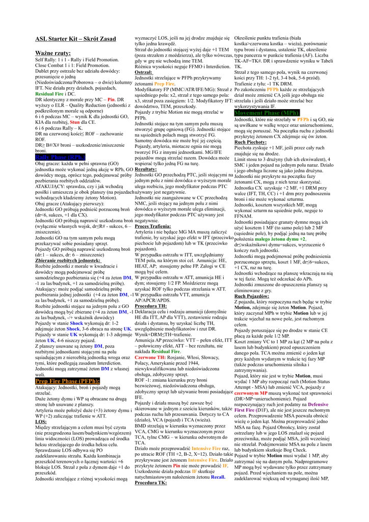 ASL Starter Kit – Skrót Zasad Ważne rzuty: Rally Phase (RPh.) Prep