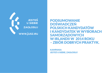 PODSUMOWANIE DOŚWIADCZEŃ POLSKICH KANDYDATÓW I KANDYDATEK W WYBORACH SAMORZĄDOWYCH W IRLANDII W 2014 ROKU – ZBIÓR DOBRYCH PRAKTYK. KAMPANIA JESTEŚ U SIEBIE, ZAGŁOSUJ! Autorka opracowania DOMINIKA TOPOLSKA Redakcja KAROLINA BŁACHNIO PUBLIKACJA POWSTAŁA W WYNIKU DZIAŁAŃ PROWADZONYCH W RAMACH KAMPANII „JESTEŚ U SIEBIE, ZAGŁOSUJ!” NA TERENIE IRLANDII, W LATACH 2013-2014 ROKU W WYNIKU WSPÓŁPRACY STOWARZYSZENIA SZKOŁA LIDERÓW, FORUM POLONIA – IRLANDIA ORAZ OKOŁO 70 INNYCH ORGANIZACJI POLONIJNYCH I IMIGRANCKICH, POLSKICH PARAFII, SZKÓŁ POLONIJNYCH, ORGANIZACJI HARCERSKICH, A TAKŻE KILKUDZIESIĘCIU AKTYWISTÓW LOKALNYCH. DUBLIN – WARSZAWA 2014 PODSUMOWANIE DOŚWIADCZEŃ POLSKICH KANDYDATÓW I KANDYDATEK W WYBORACH SAMORZĄDOWYCH W IRLANDII W 2014 ROKU – ZBIÓR DOBRYCH PRAKTYK WSTĘP Niniejsze opracowanie oparte jest na doświadczeniach polskich kandydatów i kandydatek, którzy startowali w wyborach samorządowych w Irlandii w 2014 roku. Opracowanie podsumowuje wysiłki osób, które przeprowadziły kampanię wyborczą. Te cenne informacje zbierane były z myślą o przyszłych kandydatach i kandydatkach. Pragniemy zainspirować ich do działania, ułatwić im start w następnych wyborach lokalnych w Irlandii i przybliżyć ich do wyborczego sukcesu. Chcemy też podzielić się doświadczeniem z prowadzenia działań kampanii „Jesteś u siebie. Zagłosuj!” (JUSZ, 2013 – 2014 r.) i pozostawić po nich ślad. Na końcu prezentujemy sylwetki dwojga imigrantów, którzy zostali wybrani na radnych w Irlandii. Są to: Elena Secas, która wygrała wybory w 2014 r. i została radną miasta Limerick z ramienia Labour Party, oraz niezależny kandydat Rotimi Adebari, który dwukrotnie wygrał wybory, w 2004 r. i 2009 r., zostając radnym hrabstwa Laois. Na początku opracowania zamieszczamy informacje dotyczące systemu wyborczego w Irlandii oraz zakresu obowiązków i praw radnego. Dziękujemy wszystkim kandydatom i kandydatkom za cenne informacje. Tym samym chcemy podkreślić ich kluczowy wkład w powstanie tego opracowania. Serdeczne podziękowania kierujemy do: Agnieszki Wieczorkowskiej Lecha Szczecińskiego Marcina Czechowicza Rafała Kornatki Remiego Sikory Władka Hanczara Sylwii Gołębiewskiej-Jakubas 3 4 Kampania „Jesteś u siebie. Zagłosuj!” (JUSZ) Celem kampanii „Jesteś u siebie. Zagłosuj!” (JUSZ) jest zachęcenie mniejszości polskiej w Irlandii do wzięcia udziału w wyborach samorządowych, zarówno w roli wyborców, jak i kandydatów. Wybory lokalne są dobrą okazją do przyjrzenia się potrzebom społeczności lokalnej. Dają również szansę zachęcenia mieszkańców do aktywnego zmieniania swojego otoczenia, dzięki czemu zwiększa się ich poczucie sprawczości. Wybory to też szansa dla mieszkańców na wybranie faktycznego reprezentanta własnych interesów na szczeblu lokalnym. Kampania JUSZ zachęca do oddawania głosu i skłania do zainteresowania się problemami, z jakimi borykają się lokalne społeczności, których m.in. Polacy są członkami. Kampania „Jesteś u siebie. Zagłosuj!” została zainicjowana w 2013 r. przez Stowarzyszenie Szkoła Liderów z Polski, Forum Polonia – Irlandia oraz Polish City Club z Wielkiej Brytanii przy współpracy merytorycznej kampanii „Masz Głos. Masz Wybór”. Kampania „Jesteś u siebie. Zagłosuj!” jest neutralna politycznie. Nie wskazujemy konkretnej opcji politycznej ani konkretnych kandydatów. Partnerami naszej koalicji jest już kilkanaście organizacji polonijnych z całej Unii Europejskiej. Wśród nich wymieńmy: Vote – Głosuj! z Irlandii Północnej, Emigration Project z Belgii, Polską Ludotekę Rodzinną z Włoch, Polonia Nova z Węgier, CSR Polish Global Management z Hiszpanii, Les Polonaises z Francji i IDHEM z Holandii. Kampania JUSZ była finansowana przez Ministerstwo Spraw Zagranicznych RP, Fundację im. Stefana Batorego oraz czynnie wspierana przez Ambasadę Rzeczypospolitej Polskiej w Dublinie i Londynie. Władze samorządowe w Irlandii Republika Irlandii, z populacją ok. 4,5 miliona osób, ma stosunkowo scentralizowaną administrację. Władze lokalne odpowiadają m.in. za usługi komunalne oraz monitorowanie wykorzystania funduszy europejskich w regionie. Na szczeblu lokalnym władza sprawowana jest w trzydziestu jeden radach miasta (city council) i hrabstwa (county council), organach władzy samorządowej. Do obowiązków władzy lokalnej należy piecza nad: • polityką mieszkaniową • planowaniem • infrastrukturą drogową i kanalizacyjną • strategią rozwoju • ochroną środowiska • infrastrukturą rekreacyjną • rolnictwem • edukacją • zdrowiem Nadrzędną rolą demokratycznie wybranych władz samorządowych jest reprezentowanie lokalnych społeczności. Zmiana w konstytucji z 1999 r. wprowadziła obowiązkowe wybory samorządowe organizowane co 5 lat. Co może radny? Podstawowym obowiązkiem każdego radnego jest godna reprezentacja interesów mieszkańców swojego regionu przed ciałami zewnętrznymi, głównie władzami centralnymi, szczególnie w przypadkach, gdy te podejmują decyzje, które negatywnie na nich wpływają. Radni próbują takie decyzje zmienić, starają się też uczestniczyć w procesie podejmowania najważniejszych dla regionu postanowień i zapewniają konsultacje społeczne. Samorząd zajmuje się kilkoma innymi ważnymi dla mieszkańców kwestiami. Np. w obszarze mieszkalnictwa socjalnego radni oceniają potrzeby regionu, mogą inicjować inwestycje, kupować i wydzierżawiać nieruchomości będące własnością city council lub county council. W ich kompetencjach leży też przydzielanie pożyczek i grantów na modyfikacje już istniejących budynków w ramach programów takich jak ‘Housing Adaptation Grant for People with Disability’ (granty dla osób potrzebujących przebudowy ze względu na niepełnosprawność) czy koordynacja podobnych programów dla ludzi starszych. Osobom o niskich dochod