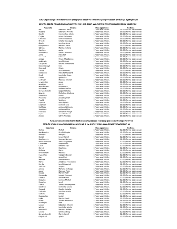 A30 Organizacja i monitorowanie przepływu zasobów i informacji w procesach produkcji, dystrybucji i ZESPÓŁ SZKÓŁ PONADGIMNAZJALNYCH NR 1 IM. PROF. WACŁAWA ŻENCZYKOWSKIEGO W KŁODZKU Nazwisko Bac Błaszko Błocki Czajka Ćwichuła Drosdz Głuch Gołębiowski Górska Hałubek Iwanowicz Jama Janoszek Jarząb Jurkiewicz Kaczyńska Kołodziejczyk Kołoszuk Kotfas Kozłowski Krzak Kubies Lechwar Lewczyński Madejski Maksylewicz Mirowski Niewiadomski Nowak Pabisiński Pacześny Pawlik Prymus Salamon Stokłosa Studniarz Suchecki Szpila Zubek Imiona Arkadiusz Rafał Katarzyna Klaudia Przemysław Jakub Adam Kazimierz Damian Tadeusz Natalia Katarzyna Karolina Anna Mateusz Karol Monika Helena Agata Bartosz Mateusz Krzysztof Wiktoria Oliwia Magdalena Kamil Patryk Renata Aleksandra Piotr Oliwia Jessica Marika Krzysztof Ryszard Dominika Kinga Agnieszka Mateusz Marian Jakub Patryk Aleksandra Norbert Stefan Kacper Nikolas Michalina Kludyna Dawid Jakub Szymon Wojciech Anna Sylwia Dominik Iwo Adriana Wiktoria Adrianna Eliza Beniamin Patryk Jakub Mateusz Patryk Andrzej Data egzaminu 17 czerwca 2016 r. 17 czerwca 2016 r. 17 czerwca 2016 r. 17 czerwca 2016 r. 17 czerwca 2016 r. 17 czerwca 2016 r. 17 czerwca 2016 r. 17 czerwca 2016 r. 17 czerwca 2016 r. 17 czerwca 2016 r. 17 czerwca 2016 r. 17 czerwca 2016 r. 17 czerwca 2016 r. 17 czerwca 2016 r. 17 czerwca 2016 r. 17 czerwca 2016 r. 17 czerwca 2016 r. 17 czerwca 2016 r. 17 czerwca 2016 r. 17 czerwca 2016 r. 17 czerwca 2016 r. 17 czerwca 2016 r. 17 czerwca 2016 r. 17 czerwca 2016 r. 17 czerwca 2016 r. 17 czerwca 2016 r. 17 czerwca 2016 r. 17 czerwca 2016 r. 17 czerwca 2016 r. 17 czerwca 2016 r. 17 czerwca 2016 r. 17 czerwca 2016 r. 17 czerwca 2016 r. 17 czerwca 2016 r. 17 czerwca 2016 r. 17 czerwca 2016 r. 17 czerwca 2016 r. 17 czerwca 2016 r. 17 czerwca 2016 r. Godzina 10:00 (forma papierowa) 10:00 (forma papierowa) 10:00 (forma papierowa) 10:00 (forma papierowa) 10:00 (forma papierowa) 10:00 (forma papierowa) 10:00 (forma papierowa) 10:00 (forma papierowa) 10:00 (forma papierowa) 10:00 (forma papierowa) 10:00 (forma papierowa) 10:00 (forma papierowa) 10:00 (forma papierowa) 10:00 (forma papierowa) 10:00 (forma papierowa) 10:00 (forma papierowa) 10:00 (forma papierowa) 10:00 (forma papierowa) 10:00 (forma papierowa) 10:00 (forma papierowa) 10:00 (forma papierowa) 10:00 (forma papierowa) 10:00 (forma papierowa) 10:00 (forma papierowa) 10:00 (forma papierowa) 10:00 (forma papierowa) 10:00 (forma papierowa) 10:00 (forma papierowa) 10:00 (forma papierowa) 10:00 (forma papierowa) 10:00 (forma papierowa) 10:00 (forma papierowa) 10:00 (forma papierowa) 10:00 (forma papierowa) 10:00 (forma papierowa) 10:00 (forma papierowa) 10:00 (forma papierowa) 10:00 (forma papierowa) 10:00 (forma papierowa) A31 Zarządzanie środkami technicznymi podczas realizacji procesów transportowych ZESPÓŁ SZKÓŁ PONADGIMNAZJALNYCH NR 1 IM. PROF. WACŁAWA ŻENCZYKOWSKIEGO W Nazwisko Bańka Bartkowska Bartosik Baziak Blacharczyk Boruczkowska Cholewka Cuch Dereń Diaków Drozdowski Fagasiński Hac Halczak Haras Herda Janiczek Janusz Jawor Kałuża Konieczko Kopacz Kopytko Kopytko Kowal Kozdroń Kubasik Kudłacik Kulbaka Kwaszyński Łątka Łeśko Machejko Mazur Minda Morawski Musiał Niewiadomski Olejniczak Imiona Michał Nicoll Olimpia Martyna Dawid Kamil Norman Norbert Jowita Dagmara Borys Adam Roksana Kaja Eliza Róża Marta Mateusz Grzegorz Daniel Jakub Piotr Kamila Iwona Arkadiusz Franciszek Kamil Krzysztof Justyna Martyna Jadwiga Mateusz Piotr Marcin Piotr Konrad Emanuel Adrian Kamil Damian Michał Kamil Tomasz Przemysław Dominika Maria Klaudia Natalia Karolina Maria Konrad Daniel Marcin Kamil Tomasz Wojciech Eliza Sebastian Marcin Dominika Maria Mateusz Robert Kamil Andrzej Marek Kamil Sylwia Data egzaminu 17 czerwca 2016 r. 17 czerwca 2016 r. 17 czerwca 2016 r. 17 czerwca 2016 r. 17 czerwca 2016 r. 17 czerwca 2016 r. 17 czerwca 2016 r. 17 czerwca 2016 r. 17 czerwca 2016 r. 17 czerwca 2016 r. 17 czerwca 2016 r. 17 czerwca 2016 r. 17 czerwca 2016 r. 17 czerwca 2016 r. 17 czerwca 2016 r. 17 czerwca 2016 r. 17 czerwca 2016 r. 17 czerwca 2016 r. 17 czerwca 2016 r. 17 czerwca 2016 r. 17 czerwca 2016 r. 17 czerwca 2016 r. 17 czerwca 2016 r. 17 czerwca 2016 r. 17 czerwca 2016 r. 17 czerwca 2016 r. 17 czerwca 2016 r. 17 czerwca 2016 r. 17 czerwca 2016 r. 17 czerwca 2016 r. 17 czerwca 2016 r. 17 czerwca 2016 r. 17 czerwca 2016 r. 17 czerwca 2016 r. 17 czerwca 2016 r. 17 czerwca 2016 r. 17 czerwca 2016 r. 17 czerwca 2016 r. 17 czerwca 2016 r. Godzina 12:00 (forma papierowa) 12:00 (forma papierowa) 12:00 (forma papierowa) 12:00 (forma papierowa) 12:00 (forma papierowa) 12:00 (forma papierowa) 12:00 (forma papierowa) 12:00 (forma papierowa) 12:00 (forma papierowa) 12:00 (forma papierowa) 12:00 (forma papierowa) 12:00 (forma papierowa) 12:00 (forma papierowa) 12:00 (forma papierowa) 12:00 (forma papierowa) 12:00 (forma papierowa) 12:00 (forma papierowa) 12:00 (forma papierowa) 12:00 (forma papierowa) 12:00 (forma papierowa) 12:00 (forma papierowa) 12:00 (forma papierowa) 12:00 (forma papierowa) 12:00 (forma papierowa) 12:00 (forma papierowa) 12:00 (forma papierowa) 12:00 (forma papierowa) 12:00 (forma papierowa) 12:00 (forma papierowa) 12:00 (forma papierowa) 12:00 (forma papierowa) 12:00 (forma papierowa) 12:00 (forma papierowa) 12:00 (forma papierowa) 12:00 (forma papierowa) 12:00 (forma papierowa) 12:00 (forma papierowa) 12:00 (forma papierowa) 12:00 (forma papierowa) Ornawka Anna Weronika 17 czerwca 2016 r. 12:00 (forma papierowa) Osajda Kamil Mateusz 17 czerwca 2016 r. 12:00 (forma papierowa) Pacześny Kacper 17 czerwca 2016 r. 12:00 (forma papierowa) Piesiak Jakub Andrzej 17 czerwca 2016 r. 12:00 (forma papierowa) Półtorzycka Radawski Dominika Maciej Piotr 17 czerwca 2016 r. 17 czerwca 2016 r. 12:00 (forma papierowa) 12:00 (forma papierowa) Rymarz Tadeusz 17 czerwca 2016 r. 12:00 (forma papierowa) Samotyj Wiktoria 17 czerwca 2016 r. 12:00 (forma papierowa) Słabicki Paweł Prz