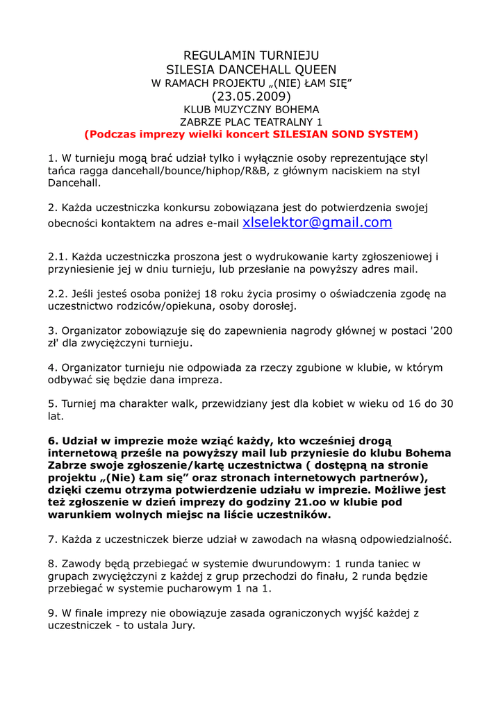 REGULAMIN TURNIEJU SILESIA DANCEHALL QUEEN (23.05.2009)