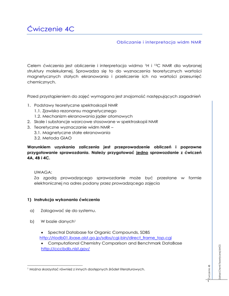 Ćwiczenie 4C - ZAKŁAD CHEMII TEORETYCZNEJ