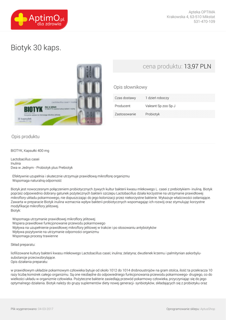 Biotyk 30 kaps. - AptimO.pl Dla zdrowia..