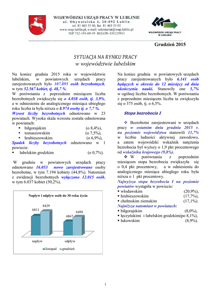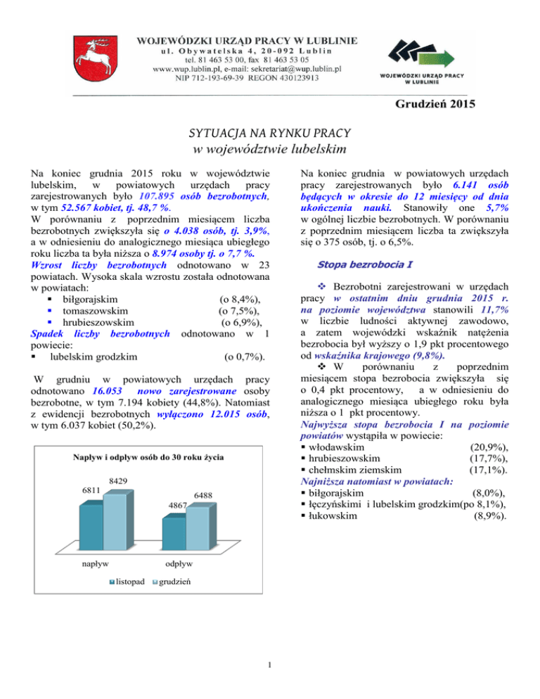 SYTUACJA NA RYNKU PRACY w województwie lubelskim