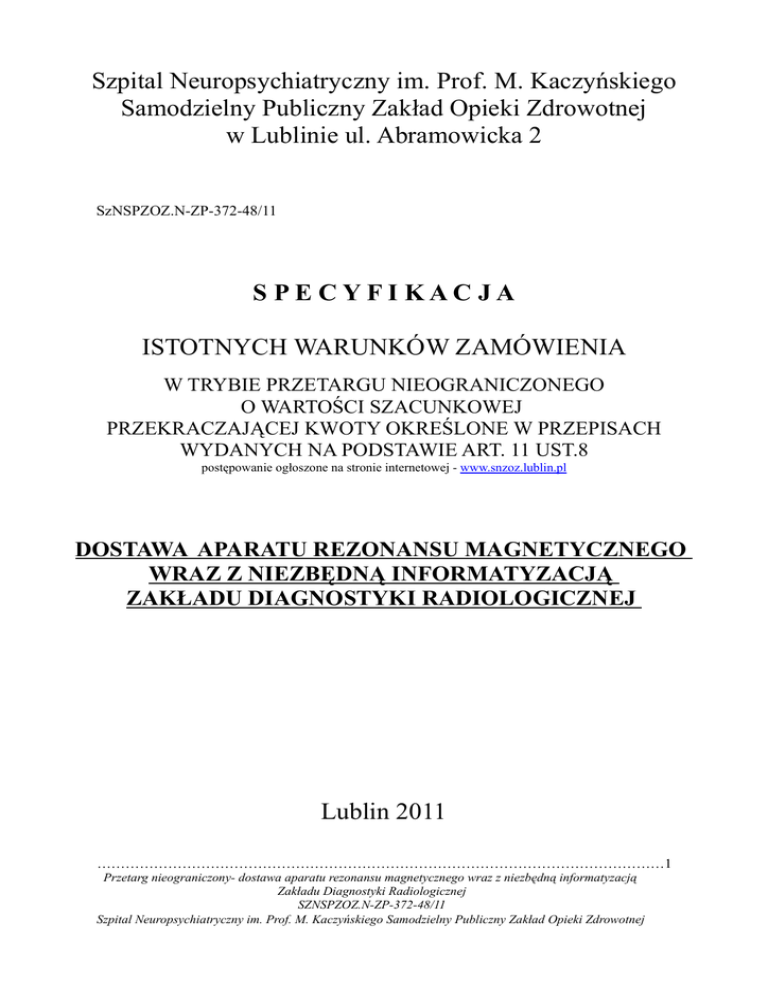 rezonansu magnetycznego wraz z niezbędną informatyzacją Zakładu Diagnostyki
