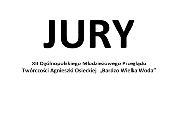 JURY XII Ogólnopolskiego Młodzieżowego Przeglądu Twórczości Agnieszki Osieckiej „Bardzo Wielka Woda” ELŻBIETA KŁOSIŃSKA- przewodnicząca jury, śpiewaczka operowa i operetkowa Absolwentka wydziału wokalno-aktorskiego oraz wydziału wokalnoaktorskiej sztuki estradowej Akademii Muzycznej im. K. Lipińskiego we Wrocławiu. Jest solistką - śpiewaczką Teatru Muzycznego CAPITOL we Wrocławiu. Na scenie tego teatru zaśpiewała wiele pierwszoplanowych ról w operetkach min.: Hrabina Zedlau Wiedeńska krew, Rozalinda - Zemsta Nietoperza, Sylwa Księżniczka Czardasza, Wiktoria - Wiktoria i jej huzar. Występowała również w musicalach: Hudel - Skrzypek na dachu, Mary Sunshine - Chicago, Zewtel, Rejca - Sztukmistrz z Lublina, rewiach, bajkach dla dzieci i młodzieży. Jest również aktorką Wrocławskiego Teatru Komedia Posiada bardzo bogaty repertuar operetkowy, operowy, oratoryjny, pieśniarski, musicalowy oraz piosenek. Koncertuje często poza granicami kraju: Austria, Niemcy, Rosja, Szwajcaria, Szwecja, Stany Zjednoczone, Włochy. Za wybitne osiągnięcia otrzymała stypendium od Ministerstwa Kultury i Dziedzictwa Narodowego, Rządu Włoskiego i Rady Miejskiej Wrocławia w Accademia Musicale Chigiana we Włoszech. Za swoją pracę artystyczną artystka została nagrodzona prestiżową nagrodą publiczności, dziennikarzy, Towarzystwa Przyjaciół Teatru - dla najlepszych artystów teatralnych Dolnego Śląska - Złotą Iglicą 2002 roku i Srebrną Iglicą 2003 roku. KATARZYNA HARABIN-ŻESŁAWSKA wokalistka, nauczycielka muzyki i sztuki Laureatka wielu festiwali m.in. Festiwalu Piosenki Studenckiej w Krakowie, Zamkowe Spotkania z Poezją w Olsztynie. Współpracuje z wieloma artystami. Kocha muzykę i śpiew, a szczególnie The Beatles... Nauczycielka przedmiotów artystycznych . Od kilkunastu lat przekonuje dzieci i młodzież, że muzyka klasyczna „nie gryzie”. Śpiewa nie tylko podczas lekcji muzyki. Chętnie siada przy ognisku z gitarą po ciężkim dniu spędzonym w górach. Przez wiele lat była w Harcerskim Zespole WokalnoInstrumentalnym „Wołosatki”. Tak mówi o tym: ”Byłam na obozie w 1984 roku, kiedy postanowiono utworzyć stały zespół. Zaczęliśmy koncertować, nagraliśmy płytę. To było tak cudowne, że nawet po maturze zostałam z nimi. Studiowałam w Kielcach i jeszcze przez dwa lata śpiewałam. To były wspaniałe, szalone lata." ALEKSANDRA KALETA wokalistka Sceny Młodzieżowej Ośrodka Kultury w Niemodlinie, laureatka nagrody Grand Prix XI Młodzieżowego Przeglądu Twórczości Agnieszki Osieckiej „Bardzo Wielka Woda” we Wrocławiu za interpretację piosenki „Świat Ordonki”. WACŁAW JUSZCZYSZYN – polski gitarzysta i wokalista, kompozytor z kręgu poezji śpiewanej piosenki turystycznej. Zaczynał jako basista w zespołach rockowych. Do poezji śpiewanej nie od razu się przekonał, zaciągnięty przez przyjaciół z górskich wędrówek prosto na scenę Turystycznej Giełdy w Szklarskiej Porębie w 1972 roku. Student kierunku Budownictwo Lądowe, odznaczony medalem prezydenta miasta Wrocławia „Budowniczy miasta Wrocławia”. Członek zespołów: Wolna Grupa Bukowina i Nasza Basia Kochana. W 1973 r. założyciel własnego Kwartetu im. Kasi Kiestrzyń wraz z Mirosławem Petrygą oraz jego siostrą. Koncertował oraz nagrywał z przyjaciółmi: Elżbietą Adamiak i Andrzejem Poniedzielskim. WALDEMAR PASTERNAKwokalista zespołu TAX FREE Fan knedli z truskawkami popijanych kawą po włosku Ciepły głos i sceniczna charyzma towarzyszą mu od dawien dawna. Poszukuje prawdy w dźwięku i dźwięku w prawdzie. A w wolnym czasie nie wędkuje, choć delektuje się wiejskim powietrzem. Zespół Tax Fre w 2012 r. w programie „Must be the music. Tylko muzyka 3” w Telewizji POLSAT dotarł do Finału show, podbijając serca widzów kompozycją „Rozmowa bez nikogo”. Mówią o sobie: gramy - bez obciążeń, bez granic, bez zahamowań - profesjonalnie i z dużą dozą melodii, z rytmem i bardzo harmonicznie. Tax Free to solidny nieopodatkowany kawał rocka i popu.