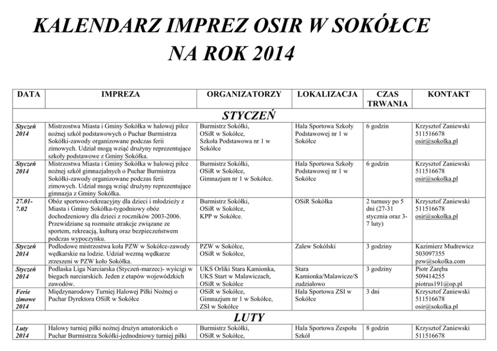 kalendarz imprez osir w sokółce na rok 2014