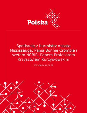 Spotkanie z burmistrz miasta Mississauga, Panią Bonnie Crombie i szefem NCBiR, Panem Profesorem Krzysztofem Kurzydłowskim 2015-08-26 19:58:32 2 W dniu 25 sierpnia 2015 roku, z inicjatywy Wydziału Promocji Handlu i Inwestycji w Montrealu, odbyło się spotkanie w ratuszu miasta Mississauga z udziałem Pani Burmistrz Bonnie Crombie i Dyrektora Narodowego Centrum Badań i Rozwoju, Pana Profesora Krzysztofa Kurzydłowskiego. W spotkaniu wziął udział I Radca Wydziału, Pan Rafał Pawlak. W dniu 25 sierpnia 2015 roku, z inicjatywy Wydziału Promocji Handlu i Inwestycji w Montrealu, odbyło się spotkanie w ratuszu miasta Mississauga z udziałem Pani Burmistrz Bonnie Crombie i Dyrektora Narodowego Centrum Badań i Rozwoju, Pana Profesora Krzysztofa Kurzydłowskiego. W spotkaniu wziął udział I Radca Wydziału, Pan Rafał Pawlak. Tematem rozmów były perspektywy współpracy w obszarze naukowo-badawczym pomiędzy miastem Mississauga a NCBiR i innymi instytucjami polskimi. Omówiono także planowaną przyszłoroczną wizytę Pani Burmistrz Bonnie Crombie w Polsce i jej komponent gospodarczy. WPHI zorganizowało również spotkanie Pana Profesora Krzysztofa Kurzydłowskiego z Prezesem firmy Cyclone MFG, Panem Andrzejem Sochajem. Firma Cyclone MFG jest najnowszym inwestorem kanadyjskim, który rozpoczął działalność na polskim rynku. Podczas rozmowy omówiono zasady współpracy w ramach programu Innolot, realizowanego przez NCBiR. 3