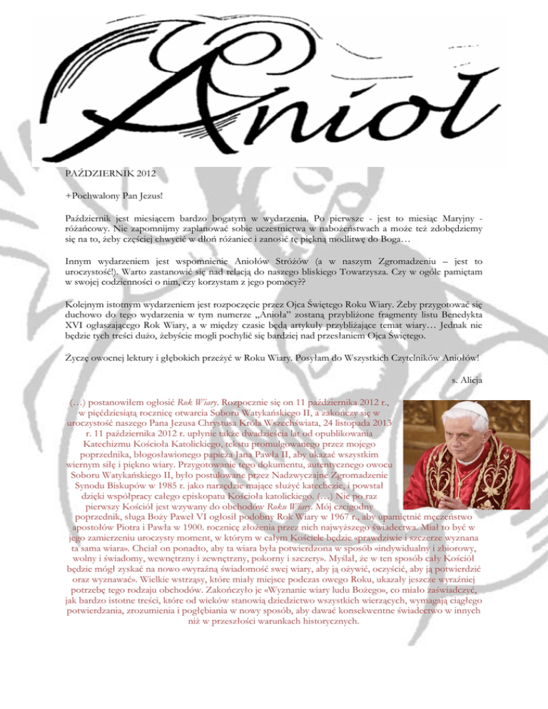 ANIOŁ październik 2012 - Zgromadzenie Sióstr od Aniołów
