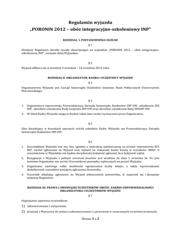 Regulamin wyjazdu „PORONIN 2012 – obóz integracyjno