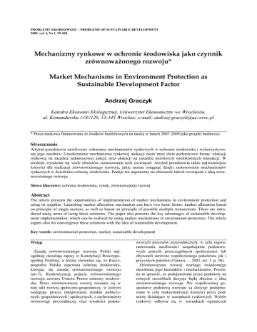 Mechanizmy rynkowe w ochronie środowiska jako czynnik