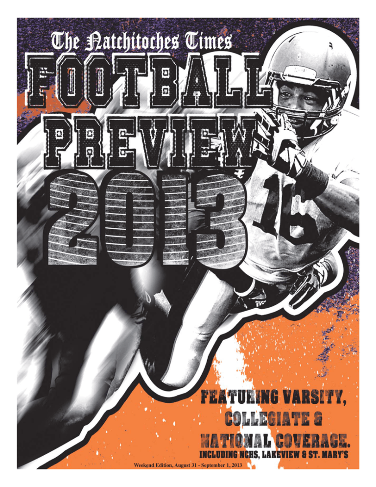 Weekend Edition, August 31 - September 1, 2013 2D THE NATCHITOCHES TIMES Weekend Edition, August 31 - September 1, 2013 Advertiser Index: Huddle in to Tommy Melder.......................2D Papa Jays ..............................3D after the game! City Bank & Trust..................3D Jackson Automotive..............5D Located at: 5306 University Parkway - Natchitoches, Louisiana Guidroz Physical Therapy ......5D Ralph Wilson ..........................7D JOIN US IN SUPPORTING OUR LOCAL TEAMS THIS McCain’s Auto Supply FOOTBALL SEASON! LOCALLY OWNED & SERVING YOU SINCE 1966 106 South Drive Natchitoches, LA 71457 (318) 352-8331 City of Natchitoches .............7D Sheriff Victor Jones ..............9D Demon Bookstore ...............11D McCain Auto ........................12D Local Restaurants ...............13D Wayne Lodridge ..................14D Bank of Montgomery...........16D Team Index: Lakeview..........................4D-7D NCHS .............................8D-11D St. Mary’s ....................12D-15D NSU .............................16D-20D Parcel Express “Let us ship your package without the worry” FedEx • UPS USPS Shipping Center • • • • • • • Faxes Copies Custom Packing Passport Photos Laminating Computer Services Corrugated Boxes Jason Johnson • Stonie Harris 242-B Keyser Ave • Natchitoches, LA 71457 (Located Next to Premium Pawn) Phone: 318-357-0222 • Fax: 318-357-0071 B IG LSU ..............................22D-23D OR SM A LL Southern......................24D-25D WE SHIP L! IT AL Grambling ....................26D-27D Saints ..........................28D-29D Cowboys......................20D-31D The Natchitoches Times football preview was produced by Sports Editor LaMar Gafford and the Natchitoches Times advertising department. Weekend Edition, August 31 - September 1, 2013 THE NATCHITOCHES TIMES 3D Natchitoches Parish gets ready for the football season! The New Orleans Saints and the Dallas Cowboys will square off on Nov. 10 in New Orleans as both teams look to return to the playoffs. The Saints’ preview is on 28D and the Cowboys’ is on 30D. Photo by the Dallas Cowboys The St. Mary’s Tigers have a young team but they are ready to make a run in the Louisiana High School Athletic Association (LHSAA) playoffs this November. Turn to page 12D for the Tigers’ preview. Photo by Kevin Shannahan A new era begins at Northwestern State as Jay Thomas takes over as head coach. More on the Demons is on page 16D. Photo by Gary Hardamon/Northwestern State Natchitoches Central has made the LHSAA playoffs in each of the past three years, but now they are looking to get out of the first round. Page 8D is where the Chiefs’ The Lakeview Gators are trying to rebound after a rough season last year. The Gators’ preview begins. Photo by Kevin Shannahan preview begins on page 4D. 4D THE NATCHITOCHES TIMES Weekend Edition, August 31 - September 1, 2013 Gators look to improve in Yocum’s second year By LaMar Gafford Sports Editor Head Coach For the first time in a long time, the Lakeview Gators have consistency at head coach. Delaine Y o c u m returns for his second season at the school. Yocum While wins and losses are important, the building up of young men is just as premium to Yocum. “I’m about the kids,” Yocum said. “I want the kids to have success. If it’s not an 8-2 record, but they’re successful, that’s what matters to me. Sure, I want to win, I’ve always won where I’ve coached. I want to win here, but it’s a work in progress.” Lakeview has had some tough times and they have not won a district game on the field in over 10 years, but having Yocum back and wanting to accept the challenge is a step in the right direction. The schedule this season will not do them any favors as they will kick off the season against St. Mary’s. The game against the Tigers will be the beginning of a non-district slate that will see Lakeview play all of the teams from District 3-1A except for Block. In the district, the Gators’ move from District 3-2A to District 1-2A will call for longer trips and tougher opponents. Lakeview will travel to Homer on Oct. 11, but will host state 2A contender Calvary the following week. While the Gators are still far away from an LHSAA playoff bid, they can improve upon last season’s rough year. Assistant Coaches James “Buster” Davis will be the offensive coordinator for the Gators this year and he brings forth a college and NFL background. Davis played his college ball at Florida State before being drafted by the Arizona Cardinals in the third round of the 2007 NFL Draft. After spending his three-year career with the Cardinals, Detroit Lions, Indianapolis Colts and Houston Texans, he played for the Hartford Colonials of the United Football League and the Jacksonville Sharks of the Arena Football League before coming to Lakeview. “He’s a good guy and he has a lot of football knowledge and playing knowledge,” Yocum said. Ronald Fontenot is another former college player on Yocum’s staff after playing for Benedictine College as an offensive lineman. With Davis and Fontenot, Yocum is optimistic that it could work for his players’ benefit. “I’m hoping that it will be a big positive for the kids,” Yocum said. “To see that if you work hard and you do well at what you do, you may not play college ball, but you always can. There’s a chance if you work hard that you could get to that level. I hope that the knowledge of the kids looking at those guys will make them say, ‘Those guys cared enough to come here.’ I Lakeview Gators head coach Delaine Yocum goes over the daily practice agenda. Yocum coached Lakeview to a 1-9 record last season but there is hope the team can improve with a familiar scene and game plan. Gators head coach Delaine Yocum goes over a ball reaction drill with his linebackers in the Aug. 15 practice. Lakeview has an athletic bunch at linebacker with Bobby Mitchell and Caiden Campbell 
