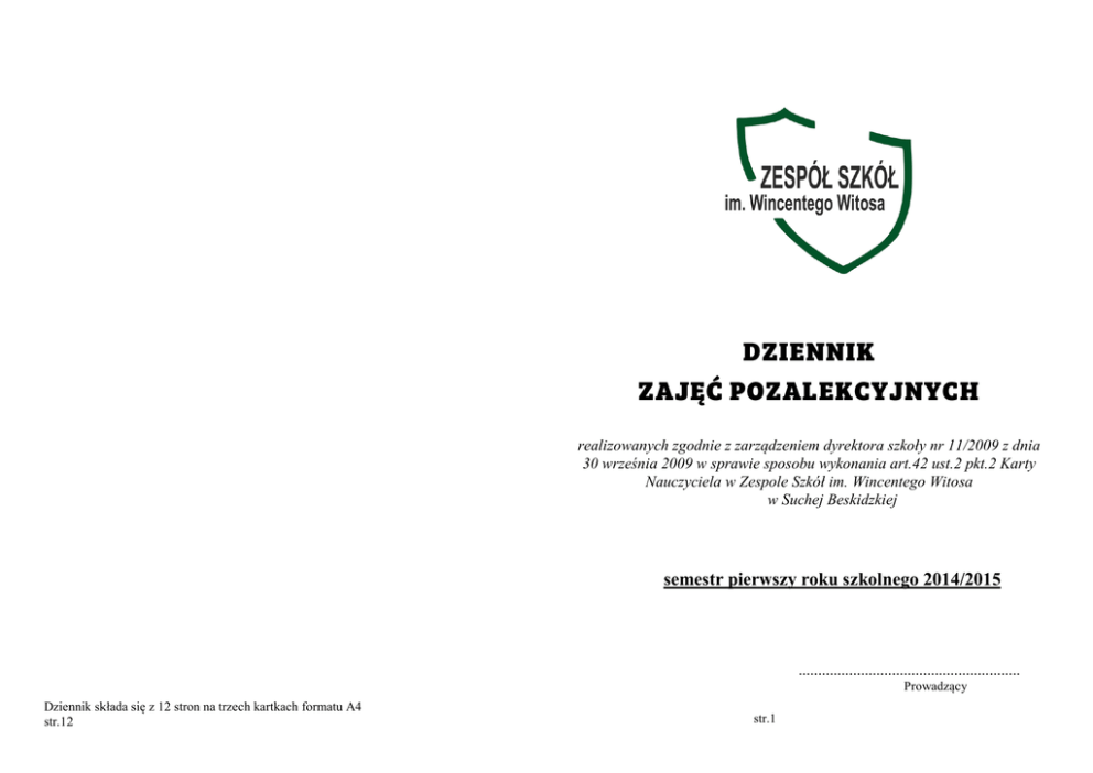 Dziennik zajęć karcianych - Zespół Szkół im. Wincentego Witosa w