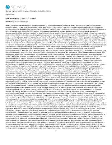 1 Nazwa: Wyższa Szkoła Turystyki i Ekologii w Suchej Beskidzkiej