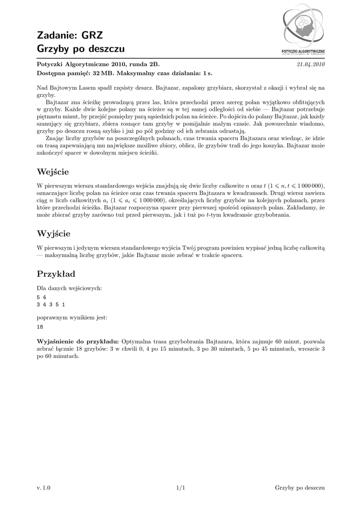 Zadanie: GRZ Grzyby po deszczu