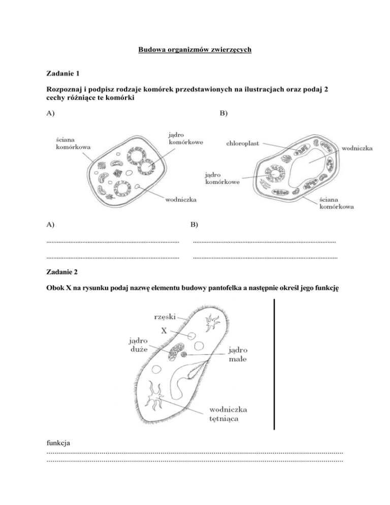 Budowa organizmów zwierzęcych Zadanie 1 Rozpoznaj i podpisz