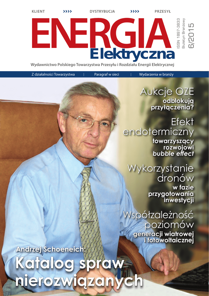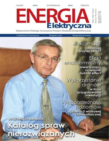 PRZESYŁ Elektryczna 6/2015 DYSTRYBUCJA ISSN 1897-3833 Biuletyn Branżowy KLIENT Wydawnictwo Polskiego Towarzystwa Przesyłu i Rozdziału Energii Elektrycznej Z działalności Towarzystwa Paragraf w sieci Wydarzenia w branży Aukcje OZE odblokują przyłączenia? Efekt endotermiczny towarzyszący rozwojowi bubble effect Wykorzystanie dronów w fazie przygotowania inwestycji Współzależność poziomów Andrzej Schoeneich: generacji wiatrowej i fotowoltaicznej Katalog spraw nierozwiązanych Więcej informacji na www.ptpiree.pl W NUMERZE Spis treści W ubiegłym miesiącu pisaliśmy na naszych łamach o dobrze rozumianej idei współpracy w ramach podsektora dystrybucji. Jej wymiernym efektem jest rozpisanie wspólnego przetargu czterech operatorów systemów dystrybucyjnych na liczniki bilansujące. Również w czerwcu wątek współpracy przewija się w wywiadzie otwierającym numer. Mowa tym razem o trwającym od lat współdziałaniu nie wewnątrz sektora elektroenergetycznego, lecz pomiędzy dwoma organizacjami branżowymi, których cele nierzadko bywają zbieżne. Gościem Rozmowy miesiąca jest Andrzej Schoeneich, dyrektor Izby Gospodarczej Gazownictwa. Katalog spraw wspólnych dla obu sektorów gospodarki odpowiedzialnych za bezpieczeństwo energetyczne kraju jest wbrew pozorom bardzo bogaty. Wspólne są problemy dotyczące smart meteringu, unbundlingu i taryfikowania cen. Obu środowiskom zależy na przyjęciu ustawy korytarzowej, razem prowadzimy działania w zakresie optymalizacji kosztów legalizacji przyrządów pomiarowych. Niestety, ów katalog spraw wspólnych jest w dużej mierze zbiorem spraw nierozwiązanych. Jakie są przyczyny tego stanu rzeczy? O tym właśnie mówi gość czerwcowej „Energii Elektrycznej”. W dziale Rynek i regulacje omawiamy problem tak zwanych wirtualnych projektów OZE. Według ekspertów aukcje OZE mogą przyczynić do wyeliminowania tego zjawiska, co zwiększyłoby możliwość przyłączenia do sieci nowych inwestycji. Bieżące wydanie naszego miesięcznika z pewnością zadowoli osoby szczególnie zainteresowane tematyką techniczną. W obszernym tym razem dziale Technika i technologie znajdą Państwo całą gamę tematów. Dział otwiera artykuł poświęcony zjawisku bubble effect, które występuje w układach izolacyjnych papier – olej. Kolejnym interesującym zagadnieniem jest wykorzystanie dronów do przygotowania inwestycji sieciowej. Natomiast w związku z rozwojem źródeł odnawialnych ważne wydaje się opracowanie poświęcone współzależności poziomów generacji wiatrowej i fotowoltaicznej, przygotowane przez Energę-Operator oraz Instytut Energetyki w Gdańsku. Z problematyką techniczną nierozerwanie wiąże się innowacyjność, o której mówiliśmy wiele podczas kongresu „Energi@21”, w ramach targów „Expopower”. Zwieńczeniem wielu dyskusji było seminarium „Sieci energetyczne – nowe regulacje”, zorganizowane przez PTPiREE wraz z Enea Operator. Relacje z kongresu i targów publikujemy w dziale Wydarzenia w branży. Zapraszam do lektury! 4 INFORMACJE ZE SPÓŁEK 6 ROZMOWA MIESIĄCA 9 Z DZIAŁALNOŚCI PTPiREE ywiad z Andrzejem W Schoeneichem, dyrektorem Izby Gospodarczej Gazownictwa (IGG) R YNEK I REGULACJE 11 Aukcje OZE odblokują przyłączenia? 13 PARAGRAF W SIECI TECHNIKA I TECHNOLOGIE 14 E fekt endotermiczny towarzyszący rozwojowi bubble effect 16 Wykorzystanie dronów w fazie przygotowania inwestycji 20 W spółzależność poziomów generacji wiatrowej i fotowoltaicznej WYDARZENIA 23 Oświetlenie dróg i miejsc publicznych 25 O swajanie języka innowacyjności 26 Innowacje w energetyce i dla energetyki 28 P rzyszłość spółek operatorskich 29 Wydarzenia w branży 30 FELIETON 31 TERMINARZ PRZESYŁ Elektryczna 6/2015 DYSTRYBUCJA ISSN 1897-3833 Biuletyn Branżowy KLIENT Wydawnictwo Polskiego Towarzystwa Przesyłu i Rozdziału Energii Elektrycznej Biuletyn Branżowy „Energia Elektryczna” – miesięcznik Polskiego Towarzystwa Przesyłu i Rozdziału Energii Elektrycznej Z działalności Towarzystwa Efekt endotermiczny towarzyszący rozwojowi bubble effect Wykorzystanie dronów Wydawca: Polskie Towarzystwo Przesyłu i Rozdziału Energii Elektrycznej, ul. Wołyńska 22, 60-637 Poznań, tel. 61 84-60-200, faks 61 84-60-209, e-mail: [email protected], www.ptpiree.pl Opracowanie graficzne, skład, łamanie i druk: Media i Rynek, ul. K. Pułaskiego 41, 62-800 Kalisz Redakcja nie odpowiada za treść reklam i ogłoszeń. Redakcja nie zwraca nadesłanych materiałów oraz zastrzega sobie prawo skracania i adiustacji tekstów oraz zmianę ich tytułów. Nakład: 1000 egzemplarzy Data zamknięcia numeru: 8 czerwca 2015 r. Wydarzenia w branży odblokują przyłączenia? Adres redakcji: ul. Wołyńska 22, 60-637 Poznań, tel. 61 84-60-200, faks 61 84-60-209, e-mail: [email protected] www.e-elektryczna.pl ISSN 1897-3833 Paragraf w sieci Aukcje OZE Redaguje zespół: Andrzej Pazda (redaktor naczelny), Małgorzata Władczyk (zastępca redaktora naczelnego), Aleksandra Rakowska (redaktor – dział techniczny), Sebastian Brzozowski, Marzanna Kierzkowska w fazie przygotowania inwestycji Zdjęcie: archiwum Zdjęcie: Julia Sheveloff Szanowni Państwo Współzależność poziomów Andrzej Schoeneich: generacji wiatrowej i fotowoltaicznej Katalog spraw nierozwiązanych Na okładce: Andrzej Schoeneich – dyrektor Izby Gospodarczej Gazownictwa czerwiec 2015 ENERGIA elektryczna l 3 INFORMACJE ZE SPÓŁEK »»Współpraca dla rozwoju smart grid PSE, Energa-Operator, Energa Wytwarzanie, agenda rządowa Japonii – New Energy and Industrial Technology Development Organization (NEDO) oraz konsorcjum japońskich firm reprezentowane przez Hitachi podpisały umowę o współpracy w zakresie rozwoju inteligentnych sieci w Polsce. Umowa dotyczy przeprowadzenia studium wykonalności projektu demonstracyjnego. Rozwiązania zastosowane w projekcie przyczynią się do stworzenia warunków dla rozwoju źródeł odnawialnych, w