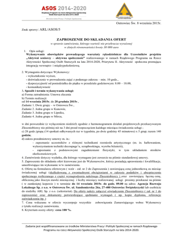 Znak sprawy: ARL/ASOS/5 ZAPROSZENIE DO SKŁADANIA OFERT