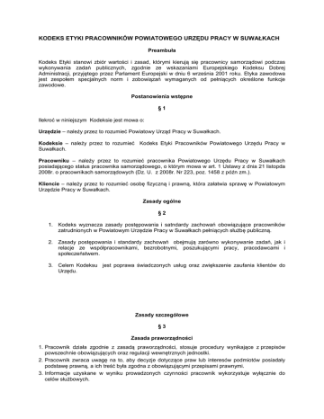 kodeks etyki pracowników powiatowego urzędu pracy w suwałkach