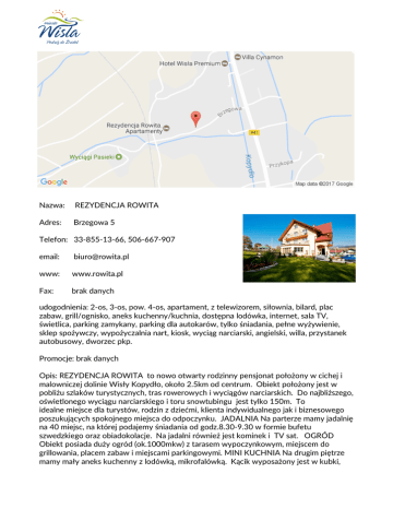 Nazwa: REZYDENCJA ROWITA Adres: Brzegowa 5 Telefon: 33