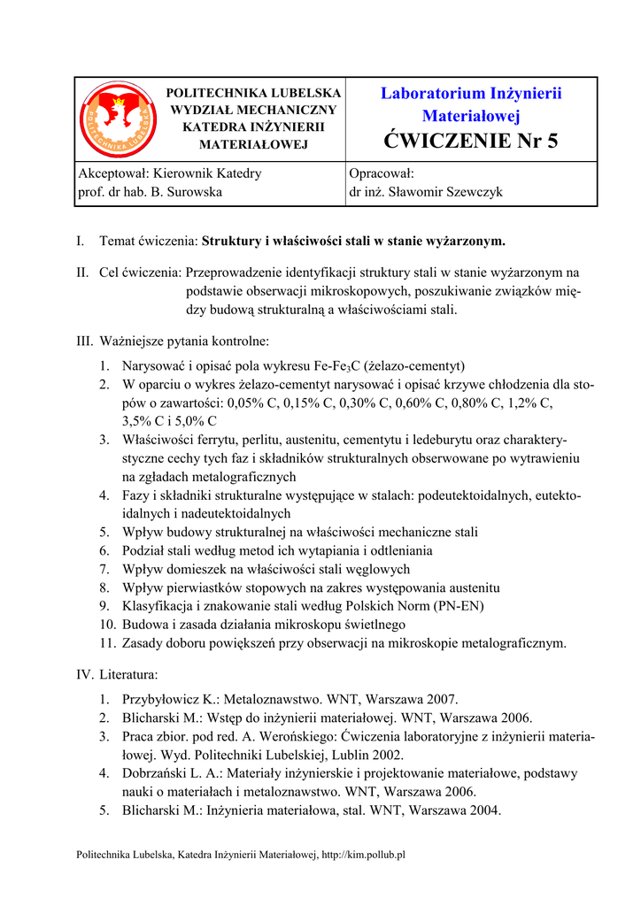 Instrukcja do ćwiczenia 5 - Katedra Inżynierii Materiałowej