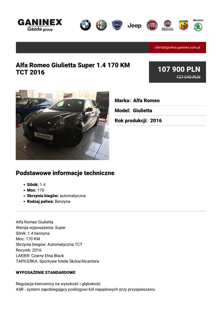 Alfa Romeo Giulietta Super 1.4 170 KM TCT 2016 - Ganinex