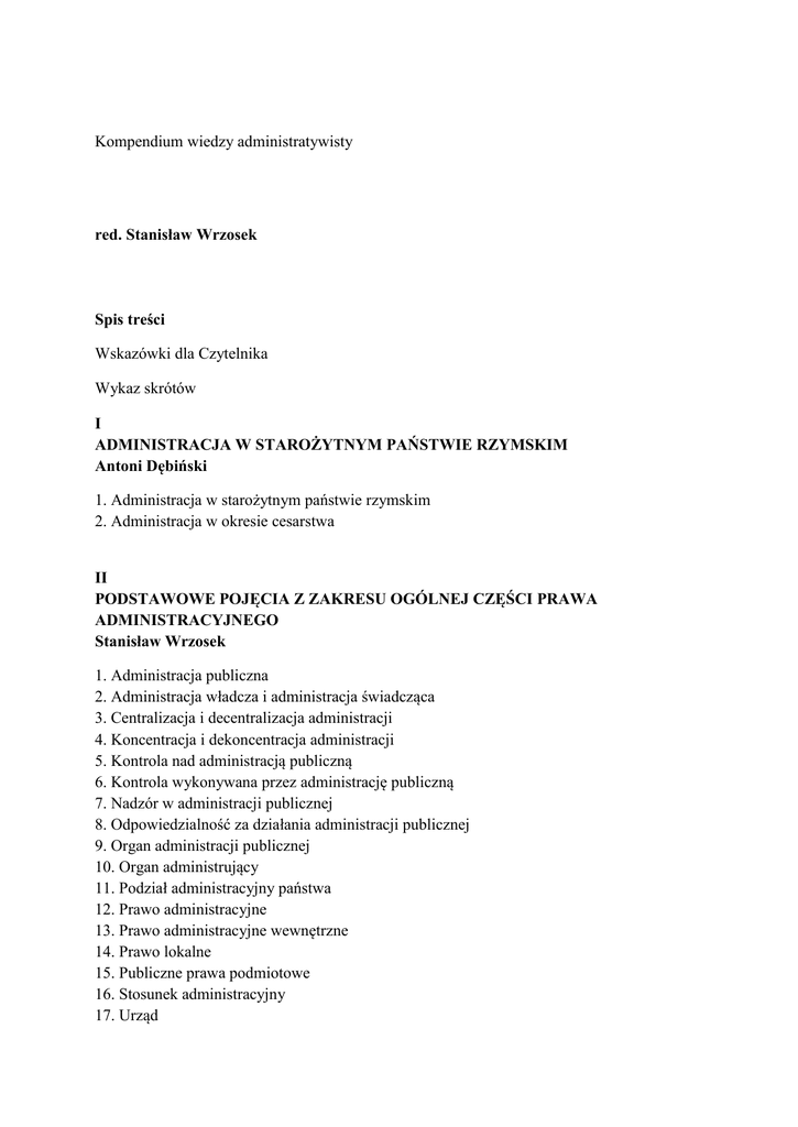 Kompendium wiedzy administratywisty red. Stanisław Wrzosek Spis