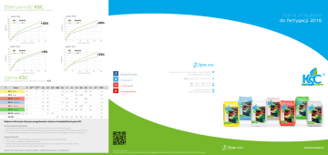 Efektywność KSC dynamika pobierania składników pokarmowych 16 kontrola KSC 180 +35% mg NO3-/h 160 140 120 100 80 60 10 8 6 2 20 0 0 5 10 15 20 g suchej masy korzeni 25 40 7 +6% 30 10 15 20 +33% 5 25 20 15 4 3 10 2 5 1 0 5 25 kontrola KSC 6 mg Ca2+/ h mg K2O-/h 5 pobór Ca2+ kontrola KSC 35 0 g suchej masy korzeni pobór K2O 0 +36% 12 4 40 0 kontrola KSC 14 mg PO42-/h 200 10 15 20 0 25 g suchej masy korzeni 0 5 10 15 g suchej masy korzeni 20 25 Gama KSC Nazwa N Azotanowy NO3- Amonowy P2O5 K2O 14 40 NH4+ SO3 B Cu Fe 5 13 0,1 0,05 0,1 29 1 KSC I - żółty 14 2 KSC II - biały 23 6 17 5 5 3 KSC III - czerwony 15 11,7 3,3 5 35 4 KSC IV - niebieski 32 40 5 KSC V - różowy 8 8 16 42 6 KSC VI - zielony 14 1 12 14 7 KSC VII - perłowy 15 15 8 KSC MIX 13 9 www.facebook.com /DoradcyTimacAgro www.twitter.com /TimacAgroPL składy poszczególnych nawozów z gamy KSC LP Gama produktów do fertygacji 2016 pobór PO42- pobór NO3- CaO MgO 11 35 0,1 Mn Mo Zn 0,01 0,1 1,15 0,1 1,18 0,05 EC* GĘST. 0,1 0,1 0,01 1,23 0,1 0,1 0,1 1,29 0,1 0,1 0,05 0,1 1,26 0,1 0,1 0,1 1,00 0,1 0,1 20 plus.google.com /+TimacagroPL www.youtube.pl /TimacAgroPolska Niepruszewo, ul. Kasztanowa 4; 64-320 BUK woj.wielkopolskie, Polska GPS N52°22’42” E16°36’00” tel. +48 61 899 44 20 fax +48 61 899 44 23 [email protected] http://www.timacagro.pl 1,29 15 28 0,5 0,5 2,5 2,0 0,2 1,5 1,31 Wybrane informacje dotyczące przygotowania roztworu i kompatybilności gamy KSC PRZYGOTOWANIE ROZTWORU: • rozcieńczyć KSC PHYTACTYL w wodzie do uzyskania koncentratu 10-20% (10-20 kg/100l), • aby uzyskać ciecz roboczą należy przygotowany koncentrat rozcieńczyć w proporcji 1:100 (max. stężenie 0,2%), • w razie potrzeby skorygować pH po rozpuszczeniu KSC, nie na odwrót. Nie zakwaszać roztworu poniżej pH 6. KOMPATYBILNOŚĆ: • KSC I, II, III, IV i V można mieszać ze sobą, aby uzyskać różne proporcje składników, • nie mieszać z produktami zawierającymi wapń, • unikać mieszania z magnezem (w postaci azotanu lub siarczanu) - magnez należy podawać osobno, • zawsze przed zastosowaniem należy wykonać próbę. Nawozy KSC należy zawsze stosować zgodnie z etykietą zamieszczoną na opakowaniu. www.timacagro.pl Wersja: LPe-1.45-V.2016 Informacje zawarte w niniejszej ulotce stanowią jedynie materiał poglądowy. Szczegółowych informacji udzielają Doradcy Techniczno-Handlowi Timac Agro. Skoncentrowany wyciąg pochodzenia roślinnego o działaniu biostymulującym Wyjątkowość nawozów KSC Konduktywność i działanie buforowe pH •Działanie chelatujące Ca, Mg oraz mikroelementów - zwiększona efektywność pobierania przez rośliny, •działanie obniżające konduktywność (EC). •Poprzez właściwości kompleksujące poprawa dostępności P, Fe, Ca z gleby, •stabilizowanie/ buforowanie pH - ograniczenie niekorzystnego wpływu nawozu na odczyn gleby. Działanie stymulująco-regulujące Cytokininy i Kwas Abscysynowy (ABA) •Pobudzenie procesu kiełkowania, •intensyfikacja podziałów komórkowych - rozwój korzeni. Definicja zasolenia Jednostki pomiarowe •Wzrost wydłużeniowy komórek (wzrost elongacyjny), •Rozwój flory bakteryjnej w ryzosferze. EC Cytokininy Kwas Abscysynowy (ABA) Betaina i witaminy •Zapobieganie starzeniu się chloroplastów - przedłużenie produktywności rośliny. •Poprzez zwiększenie pobierania wody i ograniczenie transpiracji chroni przed nadmiernym zasoleniem w komórkach rośliny. •Zabezpieczenie organów komórkowych przed uszkodzeniem w sytuacjach stresowych. Charakterystyka KSC kombinacją wysokiej jakości surowców, szybko dostępnymi formami azotu, zastosowaniem chelatowanych mikroelementów, niską zawartością chlorków, wysoką rozpuszczalnością w wodzie na poziomie powyżej 99,8%, dS/cm mS/cm μS/cm 0,001 0,01 1 1000 • obniżenie potencjału osmotycznego roztworu glebowego, • toksyczne działanie niektórych jonów (Cl, Na, B itd.) na korzenie, • pogorszenie właściwości gleby, zwłaszcza wskutek obecności jonów sodu. gramy x 2,1 niższa przewodność 1 500 0 wyższe stężenie 0 5 x 2,6 8 6 x 1,4 4 x 2,0 5 2 10 15 20 25 dni od sadzenia 1 000 0 0 30 0 5 10 15 20 25 dni od sadzenia R&D Roullier Group Wpływ KSC na plonowanie pomidora szklarniowego 0 5 10 15 20 4500 Nawozy KSC PHYTACTYL zapewniają optymalne pobieranie składników odżywczych. KSC PHYTACTYL nie obniża pH w najczęściej stosowanych stężeniach - posiada właściwości buforujące, które optymalizują pobieranie składników odżywczych. 30 R&D Roullier Group Spadek plonowania w % przy danym EC [mS/cm] 0% 10% 25% 50% Pomidor 1,7 2,3 3,4 5,0 Ogórek 1,0 1,5 2,2 3,4 Sałata 0,9 1,4 2,1 3,4 Konduktywność w KSC Produkty KSC PHYTACTYL są tworzone z najwyższej jakości surowców, zapewniających optymalną przewodność. Niezależnie od rodzaju produktu, KSC PHYTACTYL oferuje niższą przewodność w wyższych stężeniach, co zwiększa efektywność odżywiania. +15,5% 14 2500 2000 12 10 1500 8 6 4 500 2 0 20 40 dni od początku zbiorów Efekt buforowania +30,5% 16 3000 0 kontrola KSC 18 1000 60 0 80 0 2 4 6 ilość zbiorów Bernal, J., Urdániz, A. y García-Mina, JMª 8 10 Próby na papryce i pszenicy, CIPAV 2000 -1,3 pH 5 Sucha masa korzenia papryki w g/roślinę 0,1 6 1,4 '15-5-30 0,05 Sucha masa korzeni pszenicy g/doniczka 1,6 KSC III 4 0,15 0,2 4 10 15 Stężenie % Wartości pH zmierzone w wodzie irygacyjnej dla formuł KSC II, III i IV mieszczą się w zakresie od 5,5 do 7. 5 1,2 +30% 1 0,8 0,6 0,4 0,2 +50% 4 3 2 1 0 0 kontrola KSC kontrola 12 Bernal, J., Urdániz, A. y García-Mina, JMª Uprawa w komorze fitotronowej 6 3 Wpływ KSC na plonowanie papryki 20 kontrola 3500 Porównanie działania buforującego KSC względem innych produktów (CIPAV) -0,6 pH KSC 4000 Efekt buforujący pH pH 7 wg www.fao.org • w praktykowanych stężeniach nie wpływa na zmianę pH (działanie buforowe), • niewielkim wpływem na zmianę przewodności elektrycznej (EC) końcow