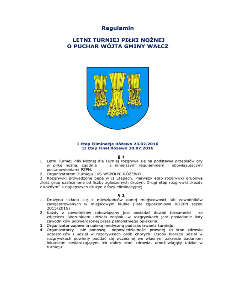 Regulamin LETNI TURNIEJ PIŁKI NOŻNEJ O PUCHAR WÓJTA
