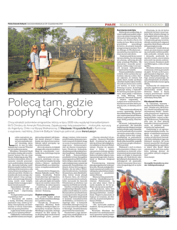 W ciągu dwóch miesięcy Wiesława i Krzysztof Rudź odwiedzili Singapur, Malezję,Tajlandię, Laos,Wietnam i Kambodżę. Nz. Angkor w Kambodży Polecą tam, gdzie popłynął Chrobry Chcą odnaleźć potomków emigrantów, którzy w lipcu 1939 roku wypłynęli transatlantykiem M/S Chrobry do Ameryki Południowej. Zapakują więc listę pasażerów i… motocykle, wyruszą do Argentyny, Chile i na Wyspę Wielkanocną. O Wiesławie i Krzysztofie Rudź z Rumi oraz o wyprawie, nad którą „Dziennik Bałtycki”obejmuje patronat, pisze Irena Łaszyn udzie najczęściej pytają o pieniądze. Skąd wy nato wszystko macie?-dociekają.-Jakto jest, że was na takie wyjazdystać,anasnie?Przecież my też ciężko pracujemy. Wiesława i Krzysztof Rudź niebardzowiedzą,jaktowytłumaczyć komuś, kto nie czuje bluesa.PodpierająsięwięcWojciechem Cejrowskim, który finansowe rozterki potencjalnych podróżników skwitował tak: „Sprzedaj lodówkę i jedź! Różnica między ludźmi, którzy realizują swoje marzenia a całą resztą świata nie polega na zasobności portfela. Chodzi o to, że jedni całe życie czytają o dalekich lądach i śnią o przygodach, a inni pewnego dnia podnoszą wzrok znad książki, wstają z fotela i ruszają na spotkanie swoich marzeń”. - Sprzedaliście lodówkę? - Chcieliśmy, ale nikt nie chciał kupić - odpowiadają zgodnie. - To skąd mieliście pieniądze na podróż po Azji? - Pracujemy jak szaleni, a każdą złotówkę obracamy piętnaście razy, zanim ją wydamy. Oszczędzamy, nie inwestujemy w rzeczy materialne. One nie są nam potrzebne. - Agdy macie wolne 500 złotych, to co z tą kwotą robicie? -Odkładamy.Izastanawiamy się, jaki bilet można zato kupić, L jaki nocleg załatwić, jaki kawałek świata obejrzeć z bliska. Każde 500 złotych jest ważne. Szkoda takich pieniędzy np. na serwis do kawy. Aletonieoznacza,żeżyjąjak abnegacialbowiecznistudenci. Mają ok. czterdziestki i normalny dom, do którego chętnie wracają. - Jesteśmy w pełni sił zawodowych, zarabiamy i nie musimy wybierać między kromką chleba a biletem - podkreśla KrzysztofRudź,nacodzieńkierowca w międzynarodowej firmie. Ostatnio byli w Singapurze, Malezji,Tajlandii,Laosie,Wietnamie, Kambodży. Podróż trwała dziewięć i pół tygodnia. Sami sobie wszystko organizowali, aplecaki nigdy nie ważyły więcej niż siedem-osiem kilo. - Doszliśmy do takiej wprawy w pakowaniu, że zabieramy tylko to, co jest absolutnie konieczne - tłumaczą. Śladem emigrantów Ta podróż będzie jednak inna.Przedewszystkimdlatego, że to podróż z misją. - Zaczęło się… od spaceru wspomina Wiesława Rudź. -Szliśmyul.PolskąwGdyni,zobaczyliśmy budynek Dworca Morskiego z 1933 roku, którego otwarcie do dziś uznaje się za oficjalną datę uruchomienia gdyńskiego portu pasażer- skiego i miejsce, które jeszcze przed II wojną światową otworzyło tysiącom Polaków drogę za ocean w poszukiwaniu nowego życia. - Zainteresowaliśmy się dwoma transatlantykami, Chrobrym i Sobieskim, zbudowanymidlapolskiejbanderyhandlowej-dodajeKrzysztof Rudź. - Postanowiliśmy prześledzićichlosy.Szczególnie zaintrygował nas M/S Chrobry, który 29 lipca 1939 roku wypłynąłwswójpierwszyiostatnirejs pasażerski. Pomyśleliśmy o ludziach, którzy byli na jego pokładzie. Ale nie tylko o Witoldzie Gombrowiczu, Czesławie Straszewiczu, Janie Rembielińskim, którzy wtedy płynęli do Buenos Aires, ale również o tych anonimowych osobach, które wyruszały do Ameryki Południowej za chlebem i już zapewne do Polski nie wróciły. Chrobry1września1939roku znajdowałsięwBrazylii,wlistopadzie został oddany w czarter Brytyjczykom i przebudowany na transportowiec dla potrzeb wojska. Wgrudniu wziął udział w konwoju transatlantyckim do Halifaksu, a w kwietniu następnego roku - w kampanii norweskiej.Zatonąłwnocyz14 na 15 maja 1940 roku pod Bodo w Norwegii, zbombardowany przez lotnictwo niemieckie. Pasażerowie z jego dziewiczego rejsu osiedli gdzieś w Argentynie, Chile, Brazylii. - Chcemy odszukać ich potomków - tłumaczy Wiesława Rudź. - Przekonać się, jak ułożyłysięichlosyijakwyglądażycie rodaków w Ameryce Południowej. Chcemy im opowiedzieć o Polsce i Gdyni, a po powrocie do kraju opowiedzieć i napisać o nich. Chcielibyśmyteżzdobyćzdjęciaztamtego pamiętnego rejsu, by przekazać je Muzeum Emigracji w Gdyni. Trzymiesięczną wyprawę planujązorganizowaćwprzyszłymroku.Narazieszukająinformacji o pasażerach statku, kontaktująsięzplacówkamidyplomatycznymi i przedstawicielami Polonii. - Mamy już listę pasażerów ciesząsię.-UzyskaliśmyjąwArchiwum Państwowym. Są na niej także dzieci. Dziś te osoby miałyby ok. 80-90 lat. Może uda się nam je spotkać? Po Argentynie, która była portem docelowym Chrobrego, planują podróżować… motocyklami. Najpierw planowali, że kupią je za oceanem, ale okazało się, że prościej będzie zabrać je z Polski. - Do samolotu? - Nie, motocykle popłyną statkiem. Ale my polecimy samolotem. Wcześniej Wiesława (bo Krzysztof ma doświadczenie) musi opanować sztukę jeżdżenia.Robicorazwiększepostępy. FOT.ARCHIWUMPRYWATNE PASJE MAGAZYN NA WEEKEND III Karmienie mnichów Małżonkowiepodkreślają,że nawetnajdłuższapodróżrozpoczyna się od pierwszego kroku. Od marzeń i planowania. Nieważne, czy chodzi o Paryż, Sri Lankę czy Laos. Może nie da się przewidzieć wszystkiego do końca, ale projekt wyjazdu przygotowują wcześniej. Pewnie dlatego, że Wiesława jest… specjalistką od projektów, zajmuje się tym zawodowo. - Znajomi podróżnicy nawet się temu dziwią, bo oni niczego nie planują, zabierają plecaki ijadą-przyznajeWiesława.-My planujemy i wszystko sprawdzamy, wykluczając w ten sposób sytuacje niebezpieczne i niepotrzebne wydatki. Pytaniepodróżnikaomiejsca i chwile, które zachwyciły najbardziej, mija się z celem. Zawsze odpowie, że ciekawy był każdy dzień, każdy spotkany c
